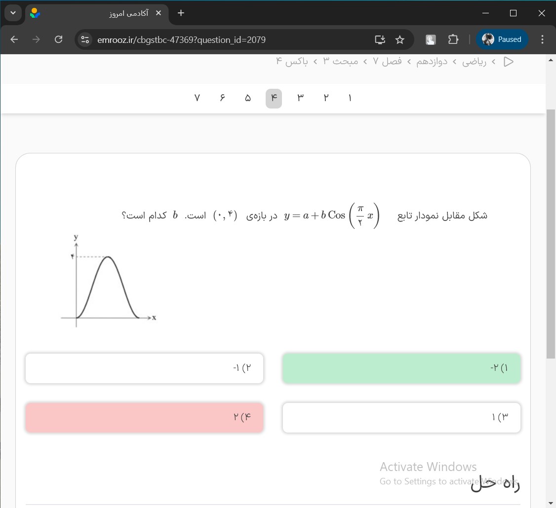 جواب چی یادگرفتی سوال اول : y=-1sinx سوال دوم : Max= 9 Min =-1