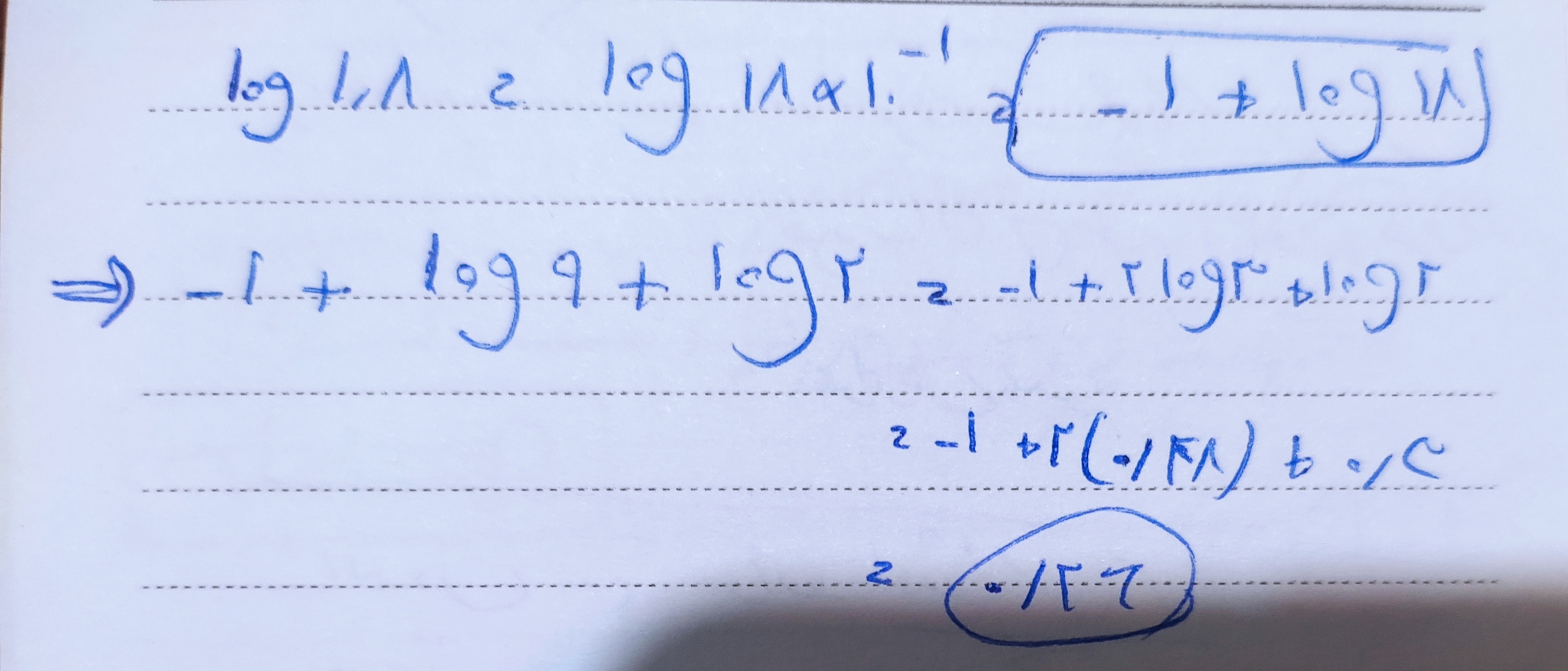 @دنیا منصوری ببین لوگ 2/15 باید بنویسی لوگ -3 ضربدر لوگ 0/85 که میشه 7 ضربدر 10 به توان3-