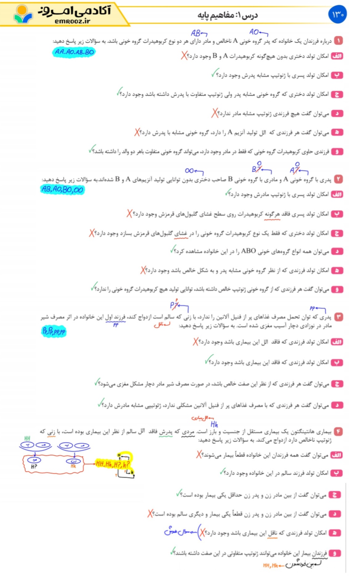 سلام ۲۳:۳۰ اینجا اگر میگفت پسری که هرگونه کربوهیدرات گروه خونی نداشته باشه ، جوابش میشد درست؟ خب مگه صورت سوال نگفته دختره این گروه خونیو داره متوجه نشدم