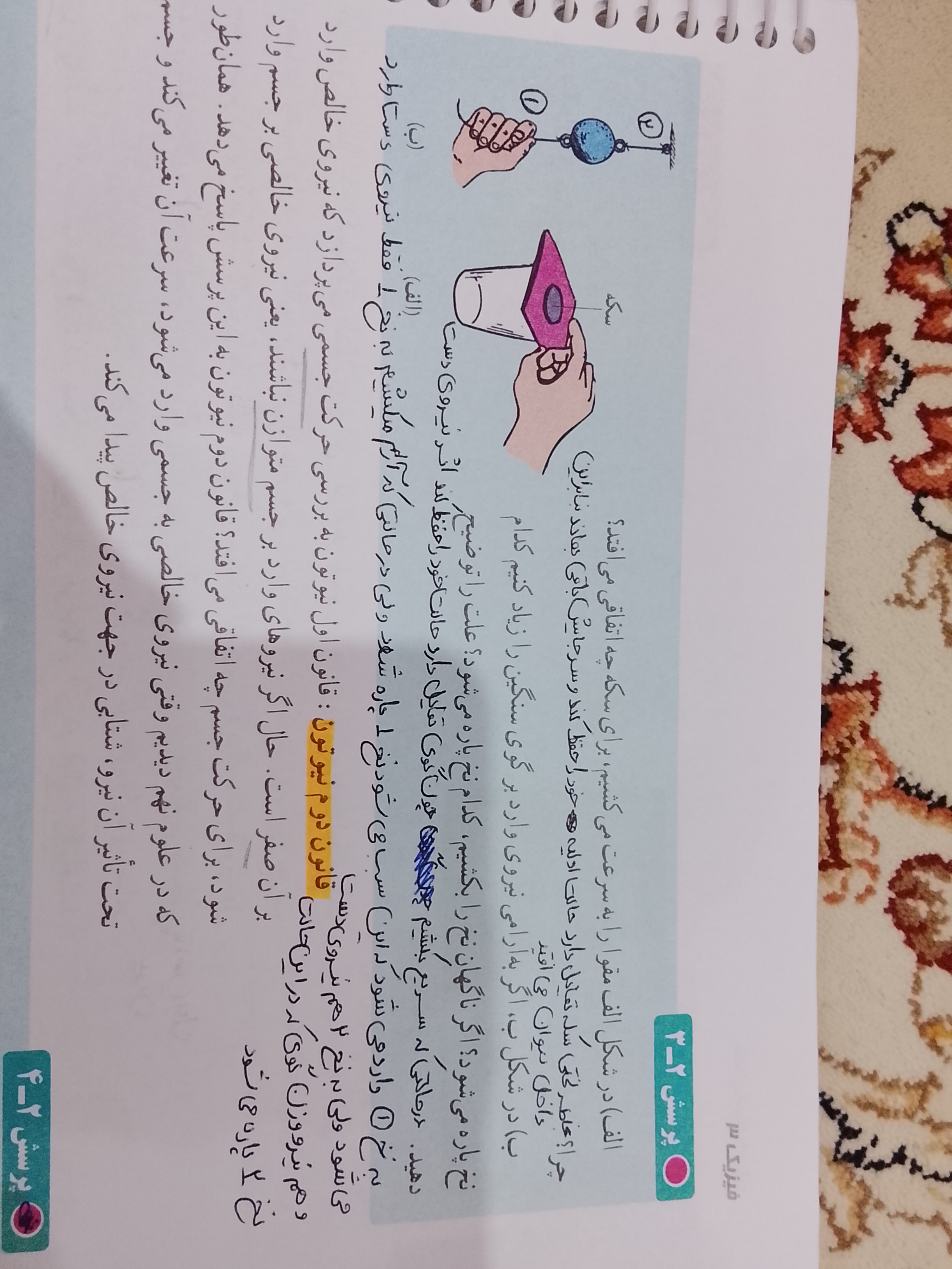 @سید محمد متین رشادی توی ازمایش کتاب اون سکه ای که روی پارچه و اونم روی یه لیوان بود اگه ما سریع پارچه رو میکشیدیم سکه میفتاد توی لیوان در واقع لختی سکه با سرعت ما رابطه عکس داره