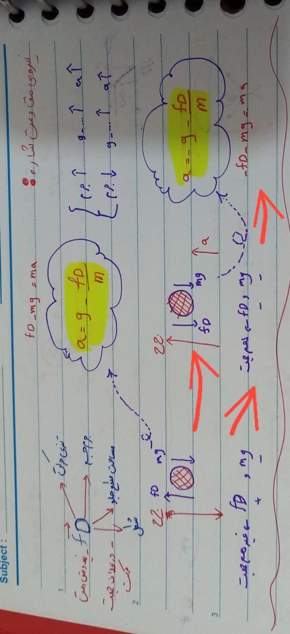 سلام خب ببین عزیزم من منظور دبیر شمارو که نفهمیدم ولی اگه حرفای استاد رو متوجه شده باشی که میگفتن کی جسم رو میکشه و کی نمیزاره که خب اینجا هم نیروی مقاومت هوا ب سمت مخالف حرکت توپ هست(ینی رو به پایین) و هم نیروی وزن (رو به پایین) پس از هم کم نمیشه و باهم جمع میشن و برابر با ma هستش... ب نظرم این چیزی که استاد میگن درست تره و شما از فرمول اولیه ای که میگه اف نت برابر با ma بری درست تره ....