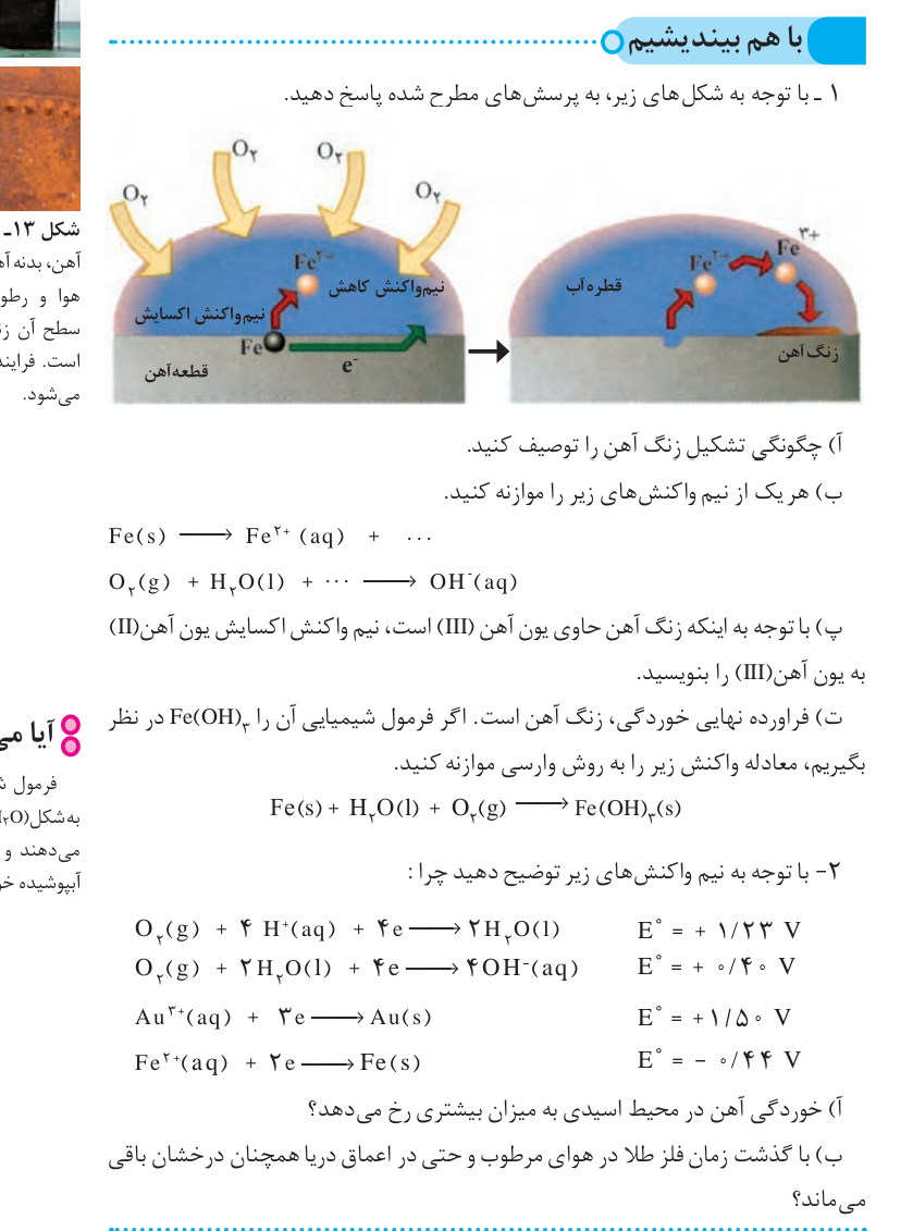 سلام در مورد ب ، یعنی واکنش اکسایش در سطح آهن رخ میده و واکنش کاهش در سطح قلع ؟