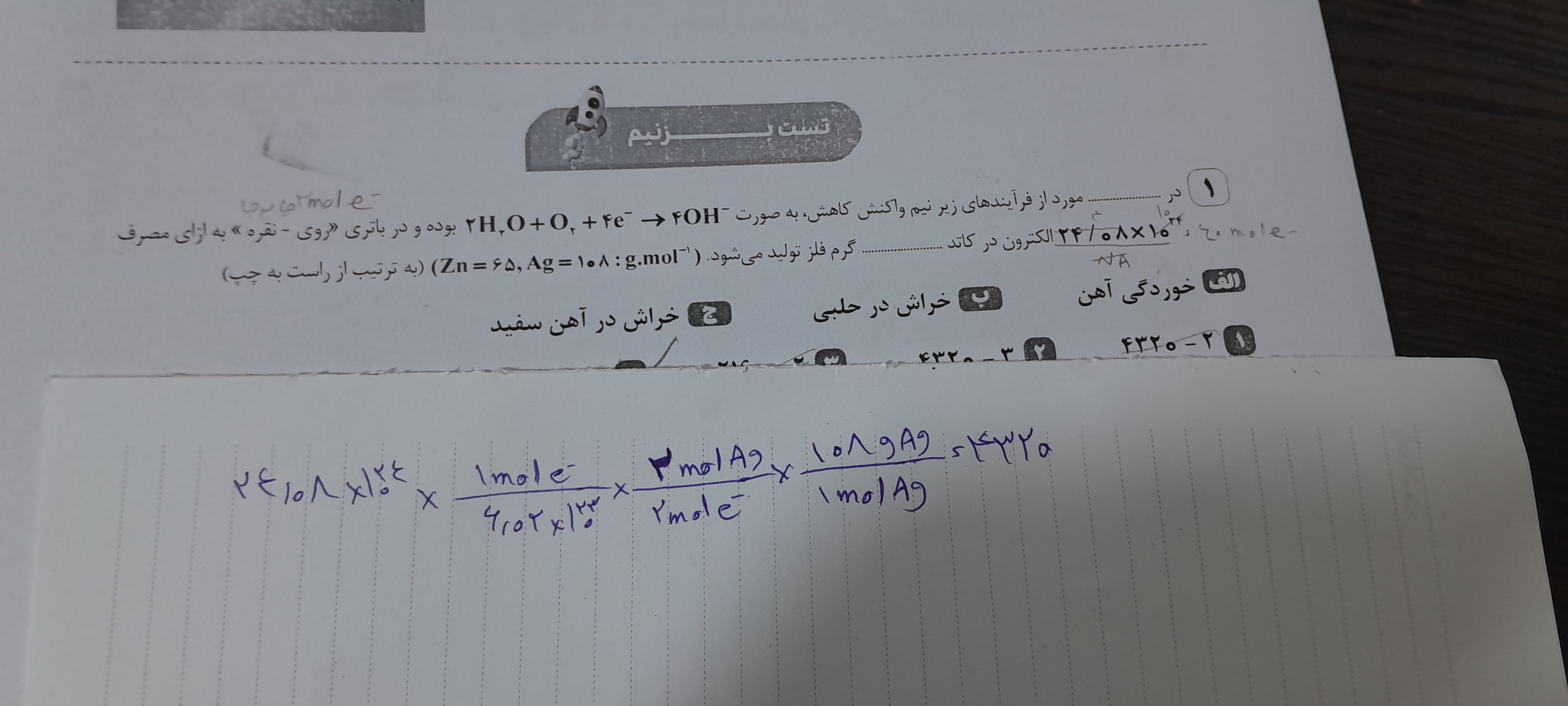 سلام توی این تست دو مورد اول خیلی غلطن چطوری کتاب تست گفته درستن ؟ نیم واکنش کاتدی که تو حلبی اتفاق می افته کاملا با نیم واکنش کاتدی سلول سوختی فرق داره مورد اولش هم مگه آب و اکسیژن کاتد نبودن چرا گفته قلع ؟