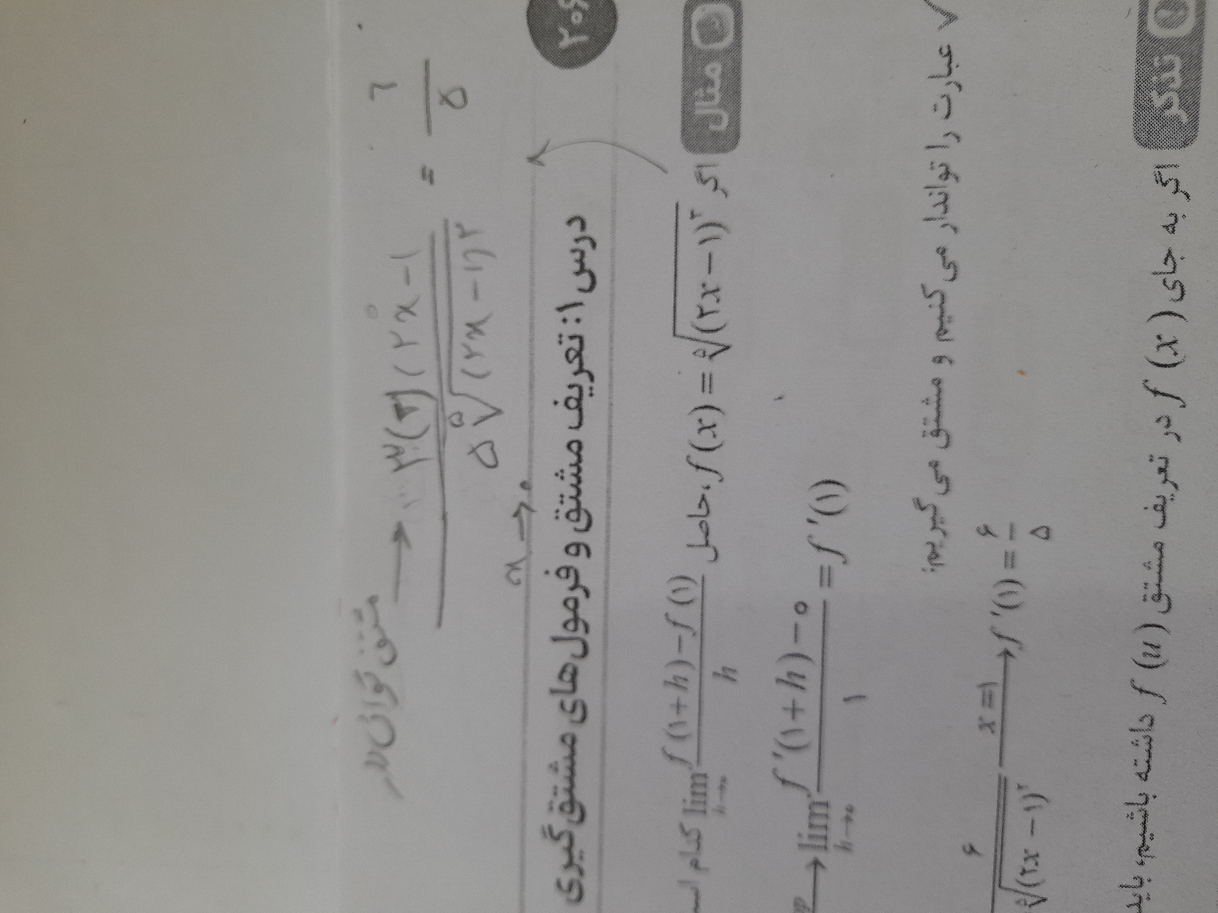 لطف می کنید مشتق این عبارت رو برام توضیح دهید