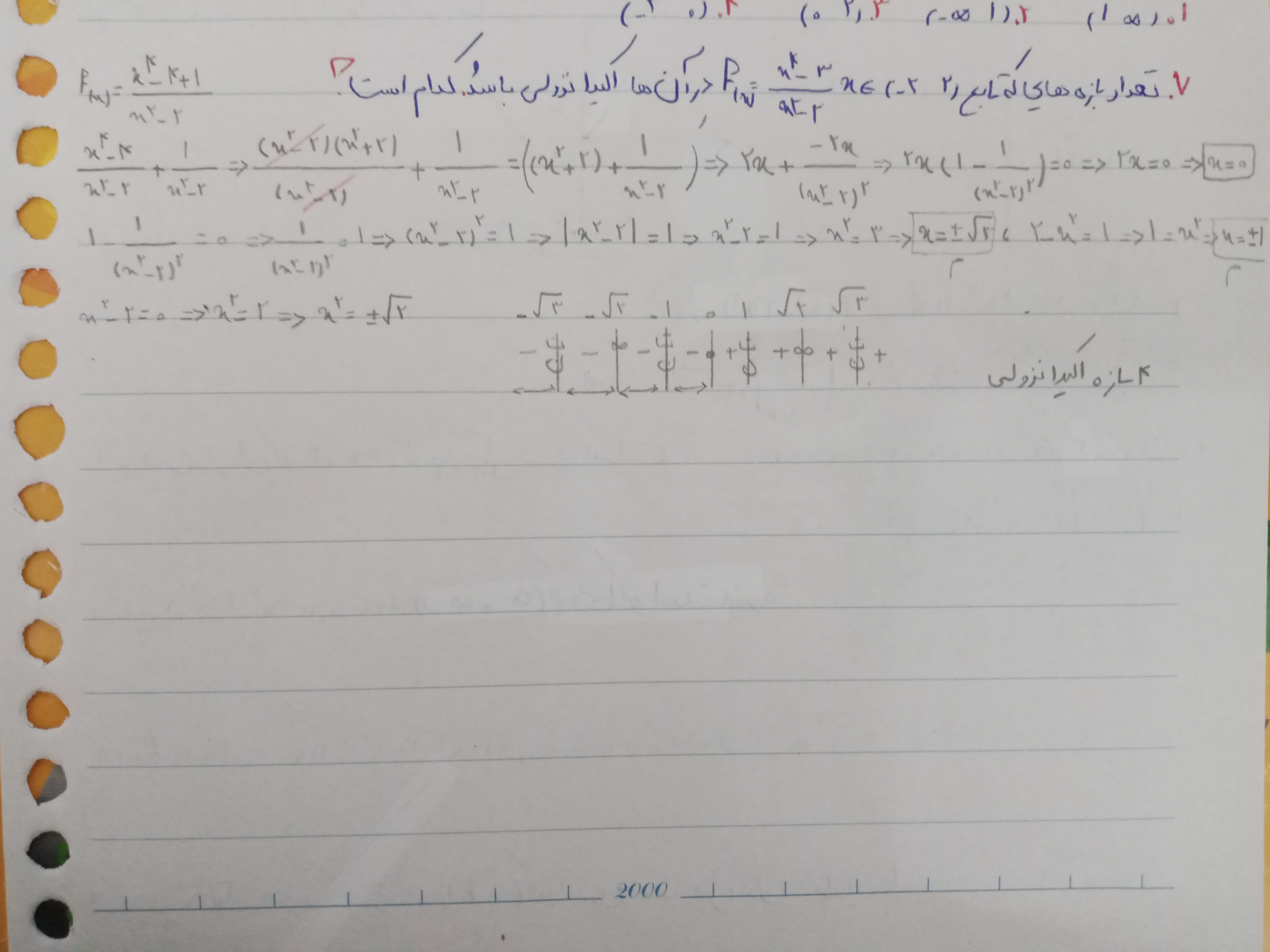 میتونیم اینجوری هم بگیم که (چون اگر مشتق بگیریم عدد ۱میشه ریشه مضاعف مخرج تابع مشتق، پس علامت تو جدول در اطرافش تغییر نمیکنه پس ۳و۴ غلطن؟!