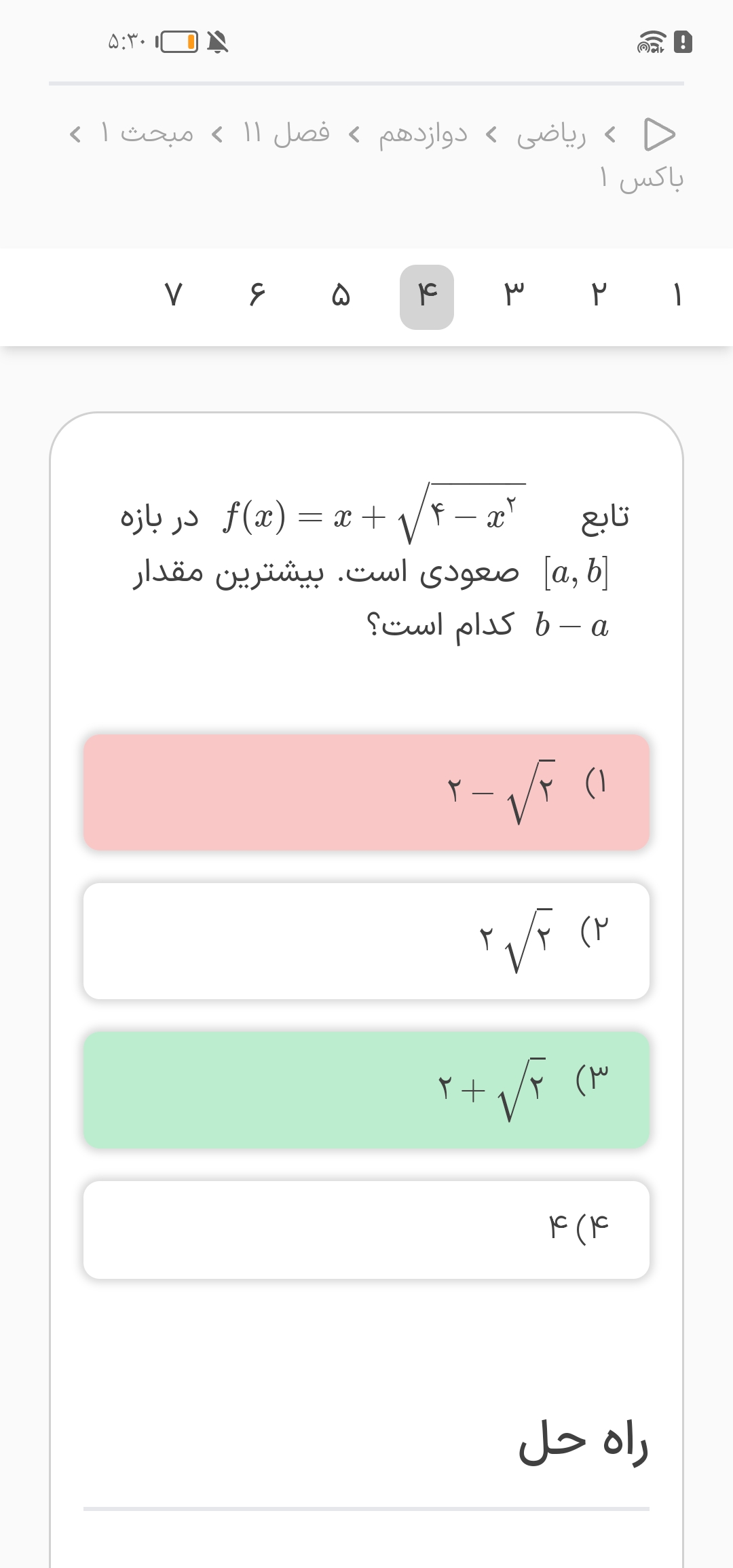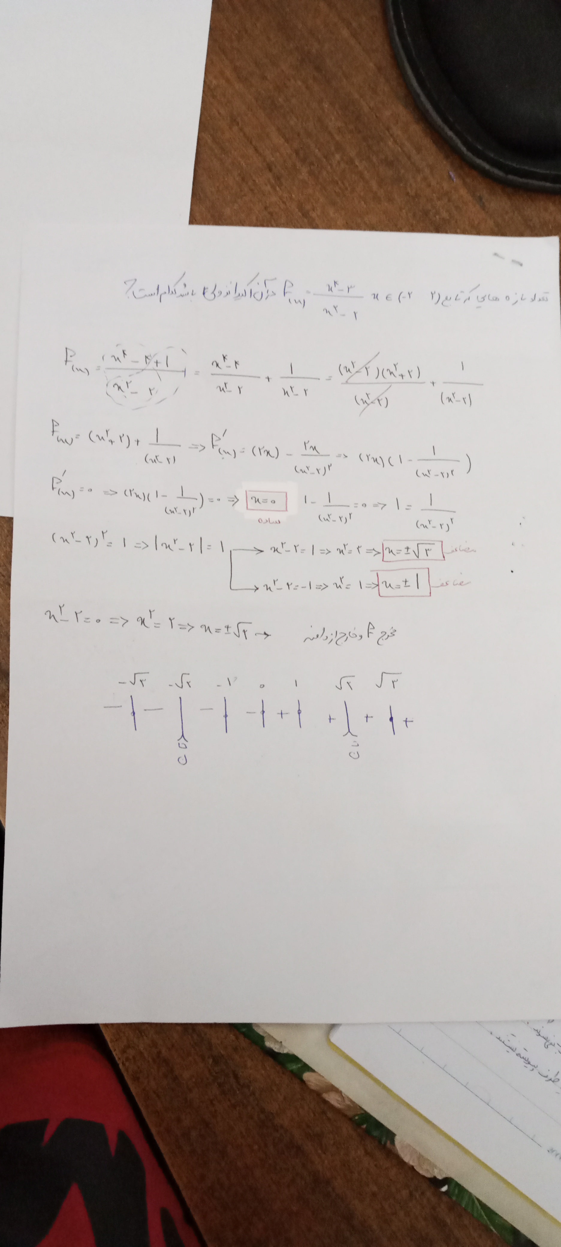 من این سوال رو اینجوری حل کردم میشه راهنمایی کنید ببینم غلطه یا نه؟!آخه جواب آخر ۴بازه ریشه ها هم دقیق همون شد ولی بازه های نزولی من با استاد متفاوت شد.