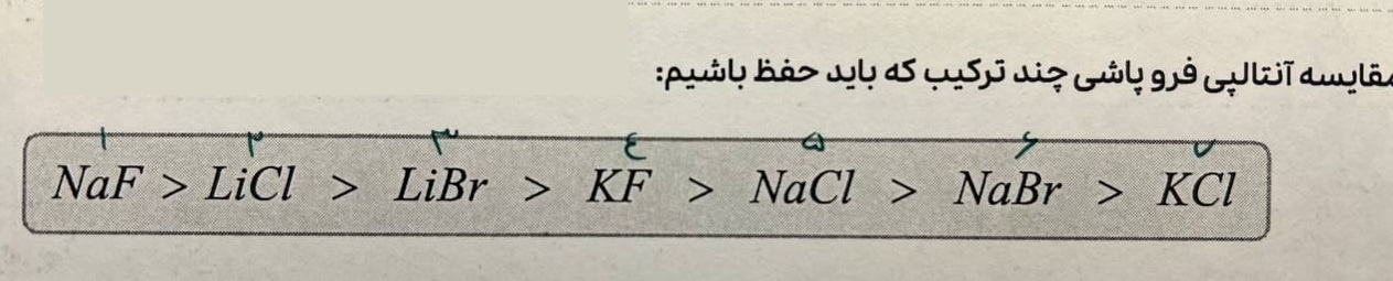 سلام چرا توی بخشی که استاد گفتن باید این جدول رو حفظ کنیم نوشته بودن LiBr>KF و توی بخشی که داشتن شکل رو میگفتن گفتن KF>LiBr؟؟