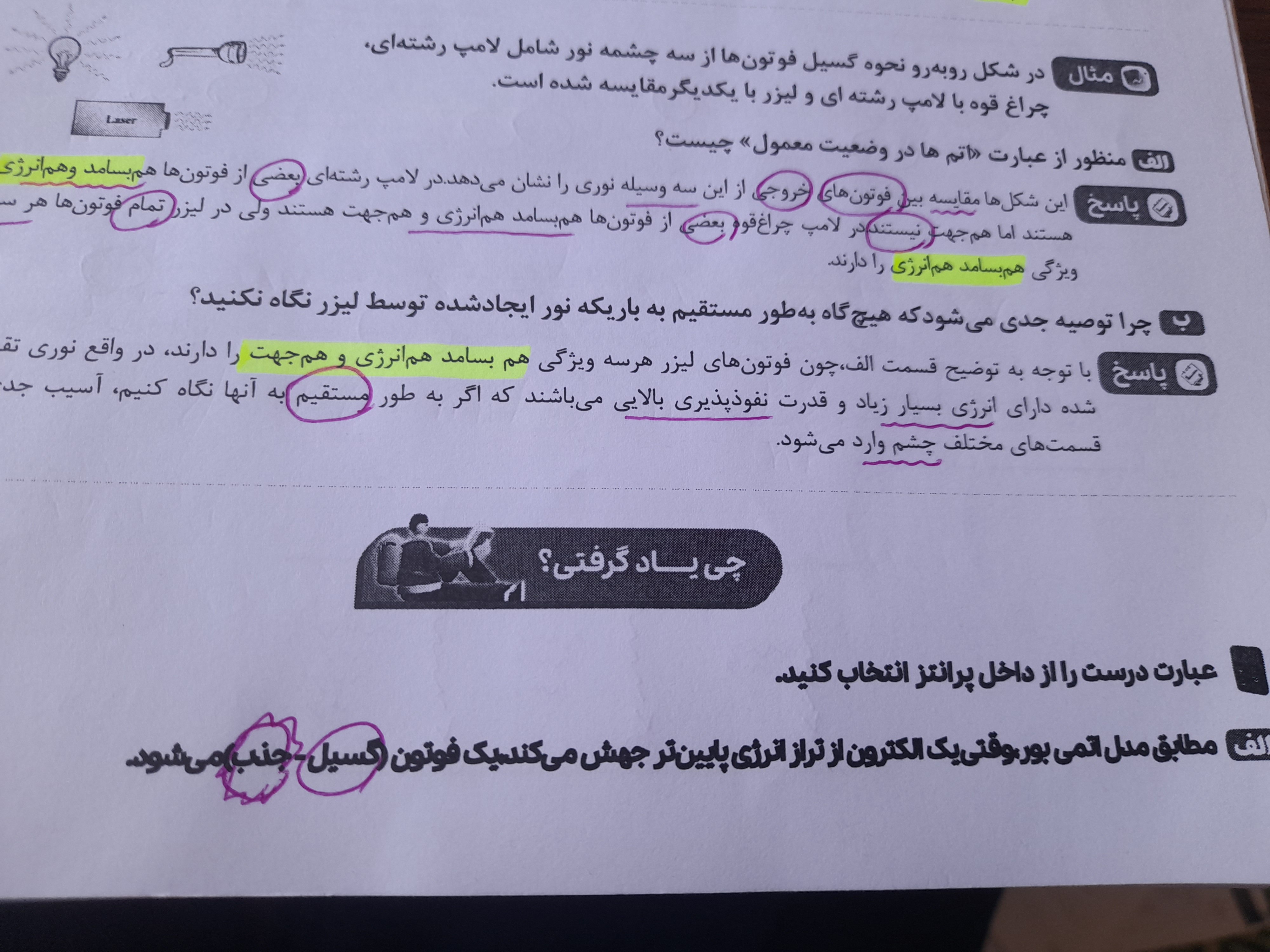 قسمت ج چی یاد بگیریم در گسیل القایی، انرژی فوتون ورودی با اختلاف انرژی دو تراز یکسان است ؟