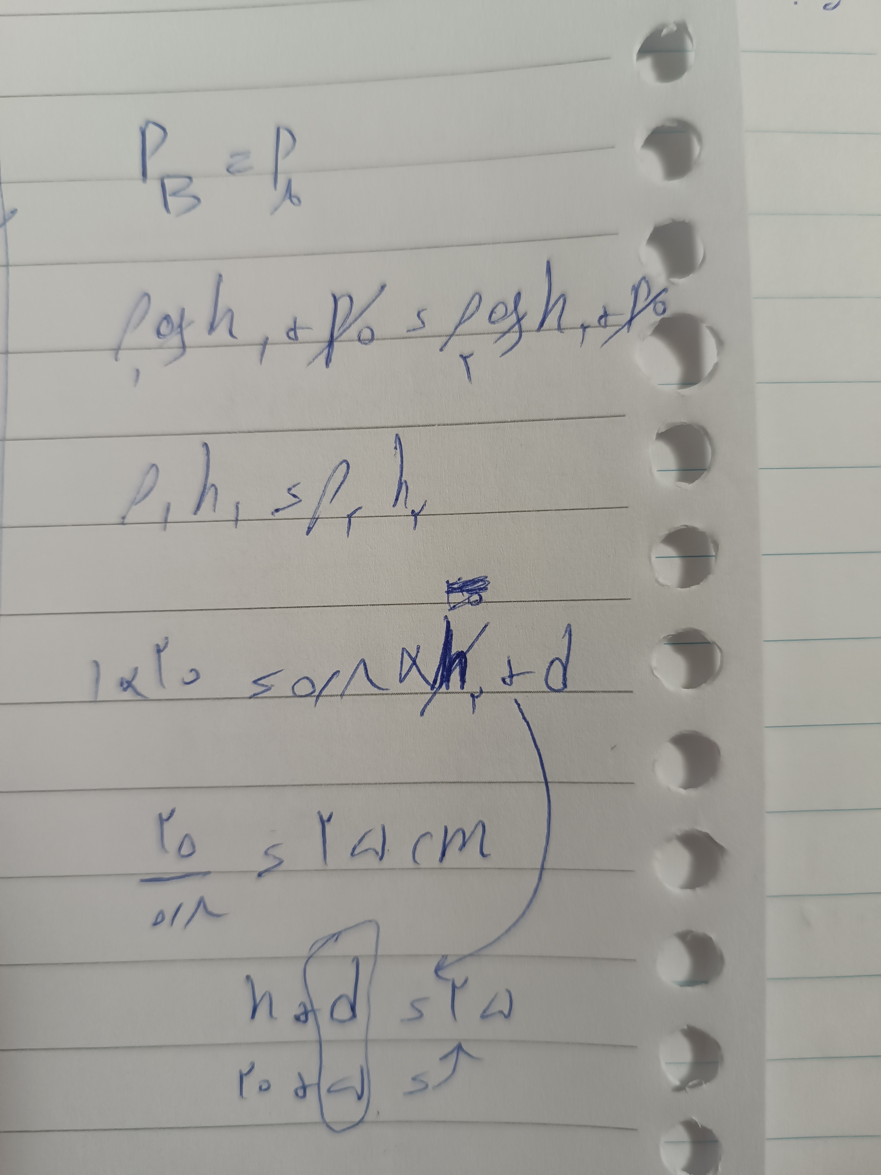 یعنی وقتی A و B تو یه مایع باشن چه ارتفاع بالا شون یکی باشه چه نباشه بازم باهم برابرن؟ چون بالا سر B ارتفاع بیشتری از سطح مایع هست