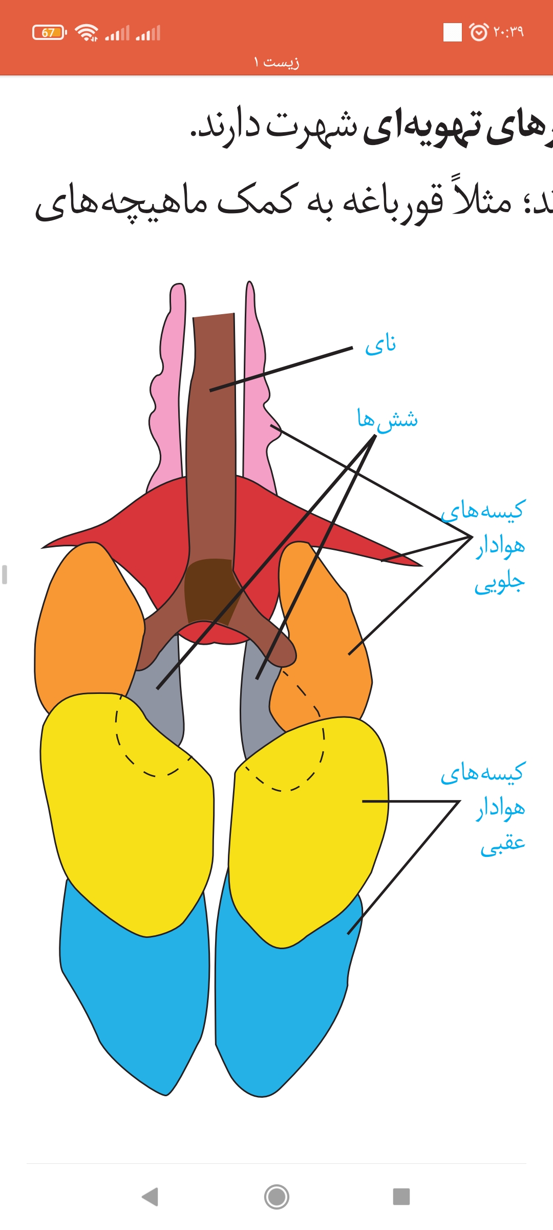 سلام وقت به خیر درشکل کیسه های هوایی اون کیسه هایی که نارنجی هستند درمجاورت دوشاخه شدن نای هستند؟یافقط قرمز ؟
