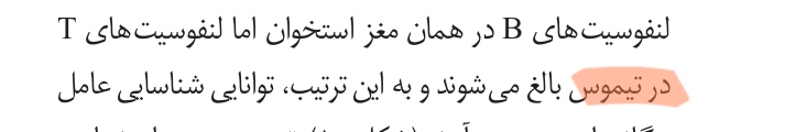 درتمرین های این بخش نوشته شده هورمون تیموسین روی مغز استخوان اثر میذارد ولنفوسیت Bبالغ میشود اولا اشتباه نوشته شده Tبالغ میشود توسط تیموسین واینکه مگر لنفوسیت Tخودش باخون به تیموس نمیرفت ؟من اینطور برداشت کردم ازاین حرف که تیموسین روی مغز استخوان اثر میگذارد ونیازی به رفتن لنفوسیت به تیموس نیست ممنون میشم راهنمایی کنید