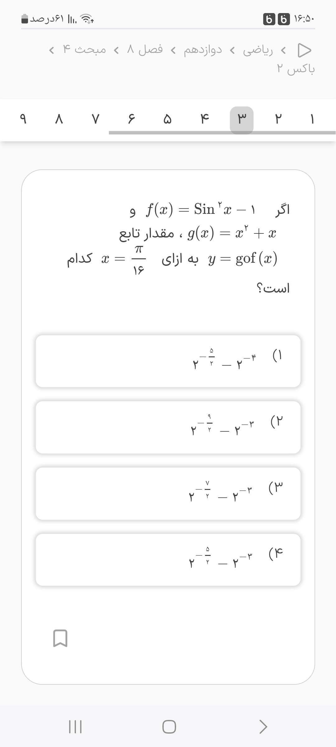 سلام آقا نشد اینجوری که نمیشه . جمع دو عبارت توان دو رو مستقیما تبدیل کنیم به اتحاد مربع کامل !!!!!!!!! اگگگگگر بخوایم دو عبارت توان دو رو به اتحاد مربع تبدیل کنیم باید عبارت دوبرابر اولی در دومی رو ازش کم کنیم . توی این تست مستقیما دو تا سینوس و کسینوس توان زوج رو اتحادش کردن !!!!!!!!!!!!!!