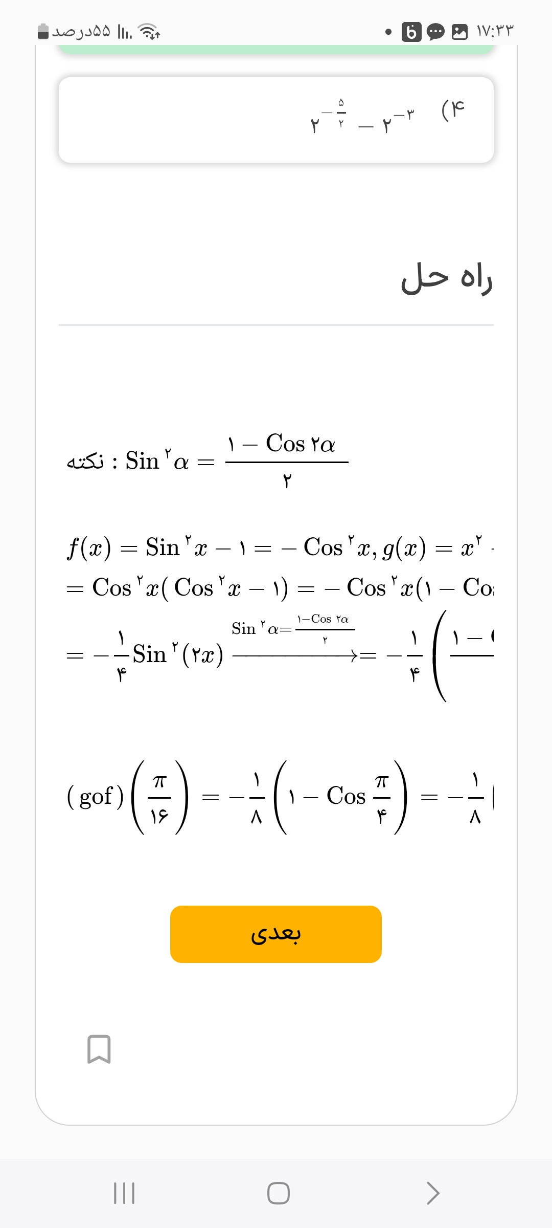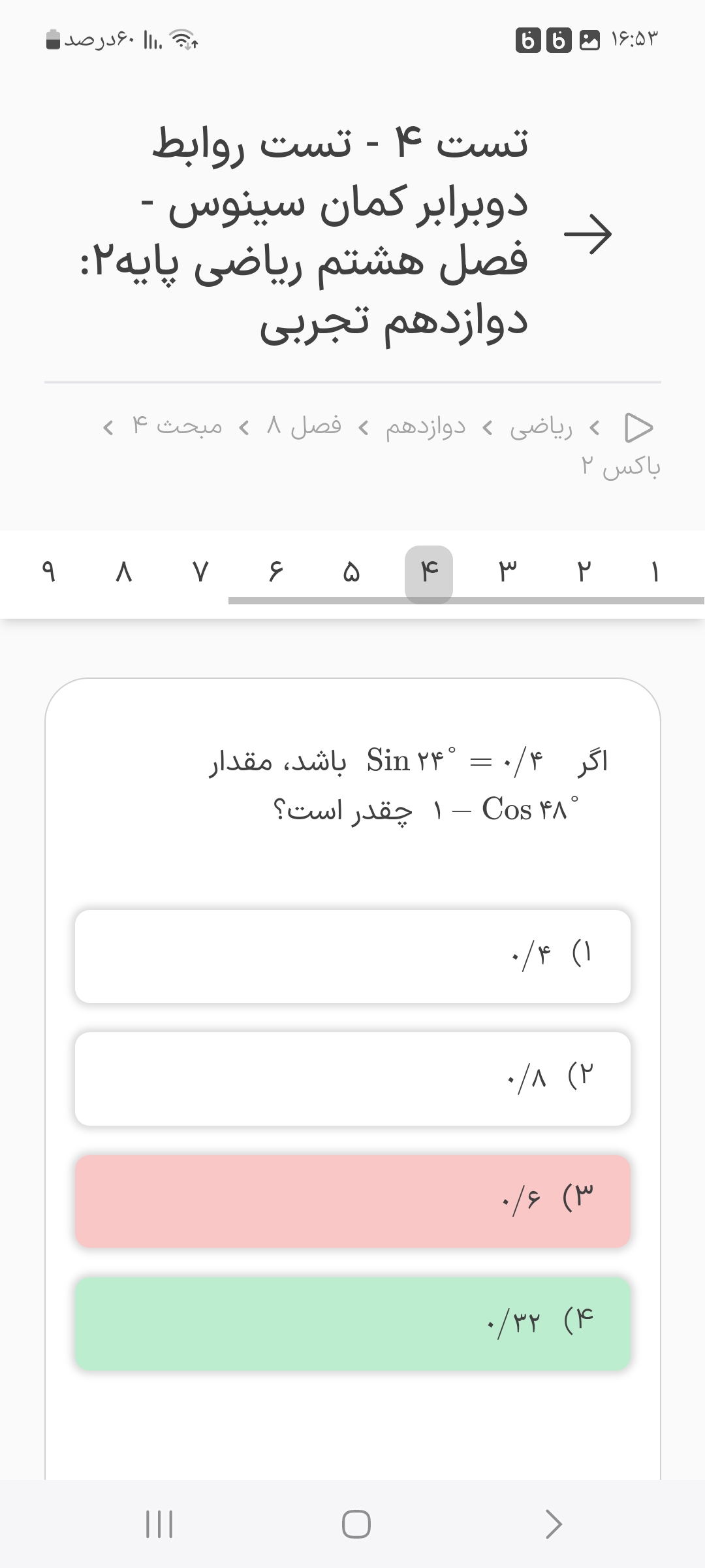 @نرگس مهدوی بله درسته اما در جواب تست . انگار درست اعمال نشده . سینوس 80ئصورت رو با کسینوس 80 ساده کردن