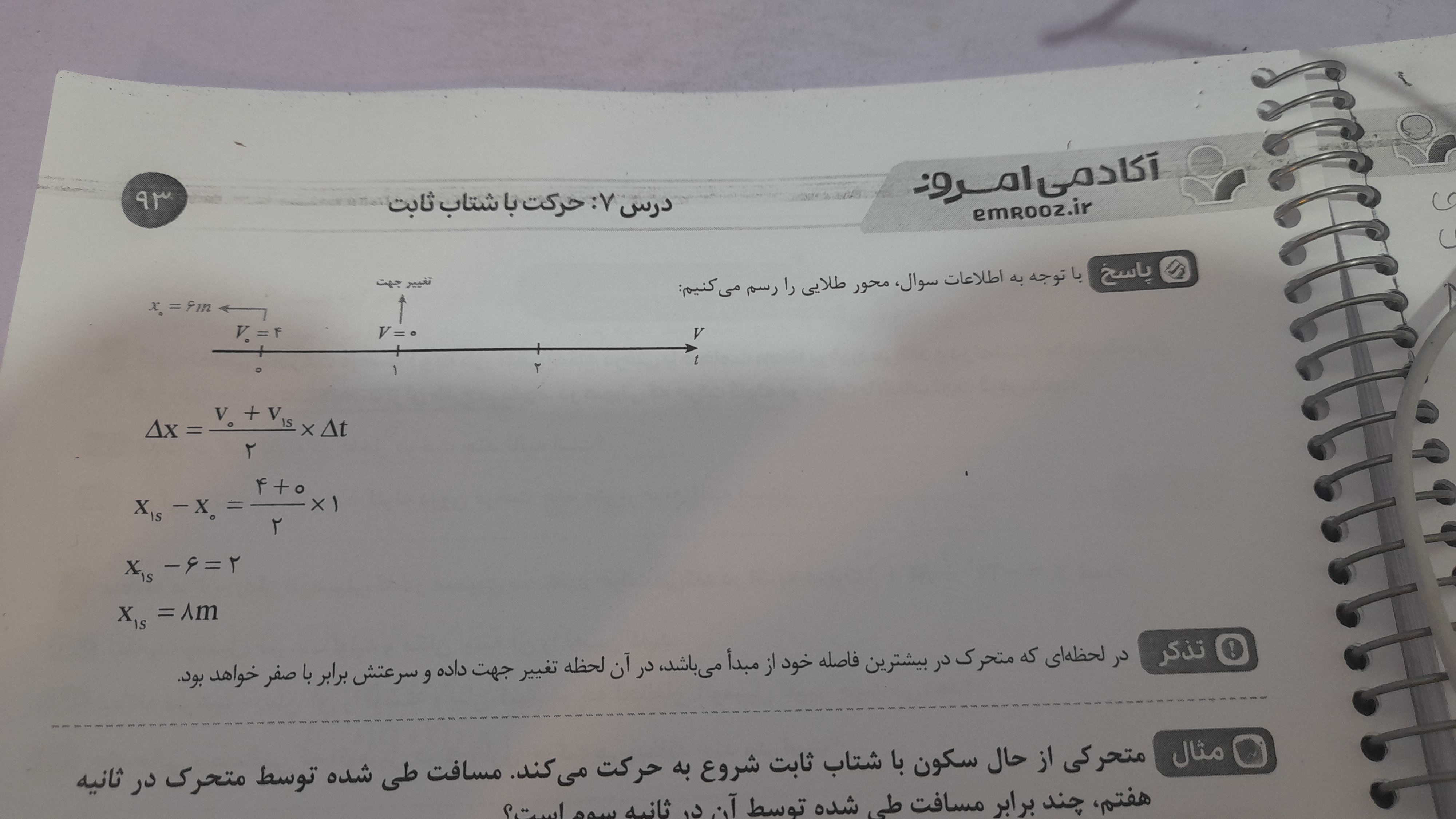 سلام چرا اینجا شتاب با V0 جمع نشد (ینی V0+2a) ولی تو مثال قبل جمع شد من فرقش و متوجه نمیشم ممنون میشم توضیح بدید🙏