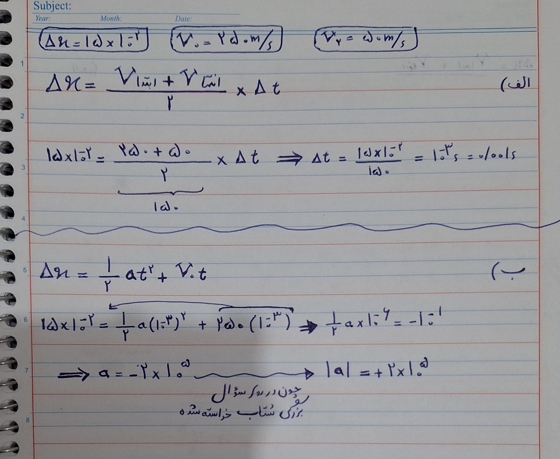 @Taha Rashidi سلام شما هم بنظرم شتابو 3 بدست اوردید ولی باید 3 رو منهای 1 کنید که میشه در فاصله منفی 2 متر میشه اگه اشتباه نکنم