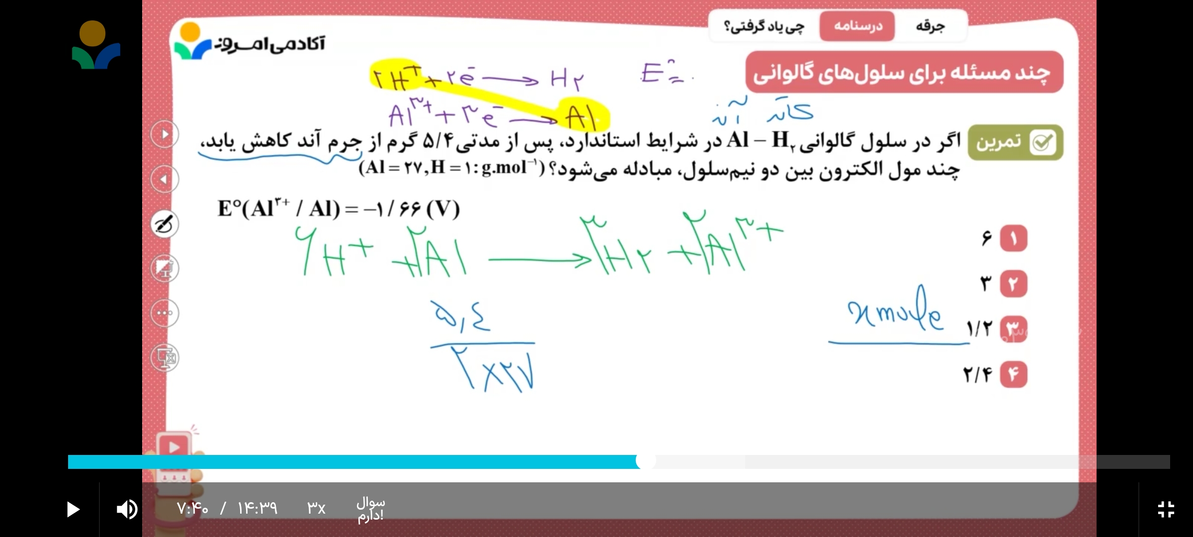 آموزش ویدیویی مسئله های سلول های گالوانی برنامه مطالعاتی 150 روزه هفته 12 توسط بهترین اساتید کنکور به همراه جزوه ، تست ، تمرین و رفع اشکال کنکور | کنکور - آکادمی امروز
