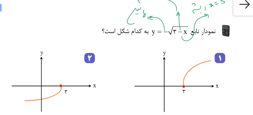 سلام وقتتون بخیر اینجا بعد از رسم تابع رادیکالی نمیشه گفت چون پشت رادیکال منفی داریمیه واحد بیاد پایین؟مثل تابع رادیکال با فرجه زوج؟