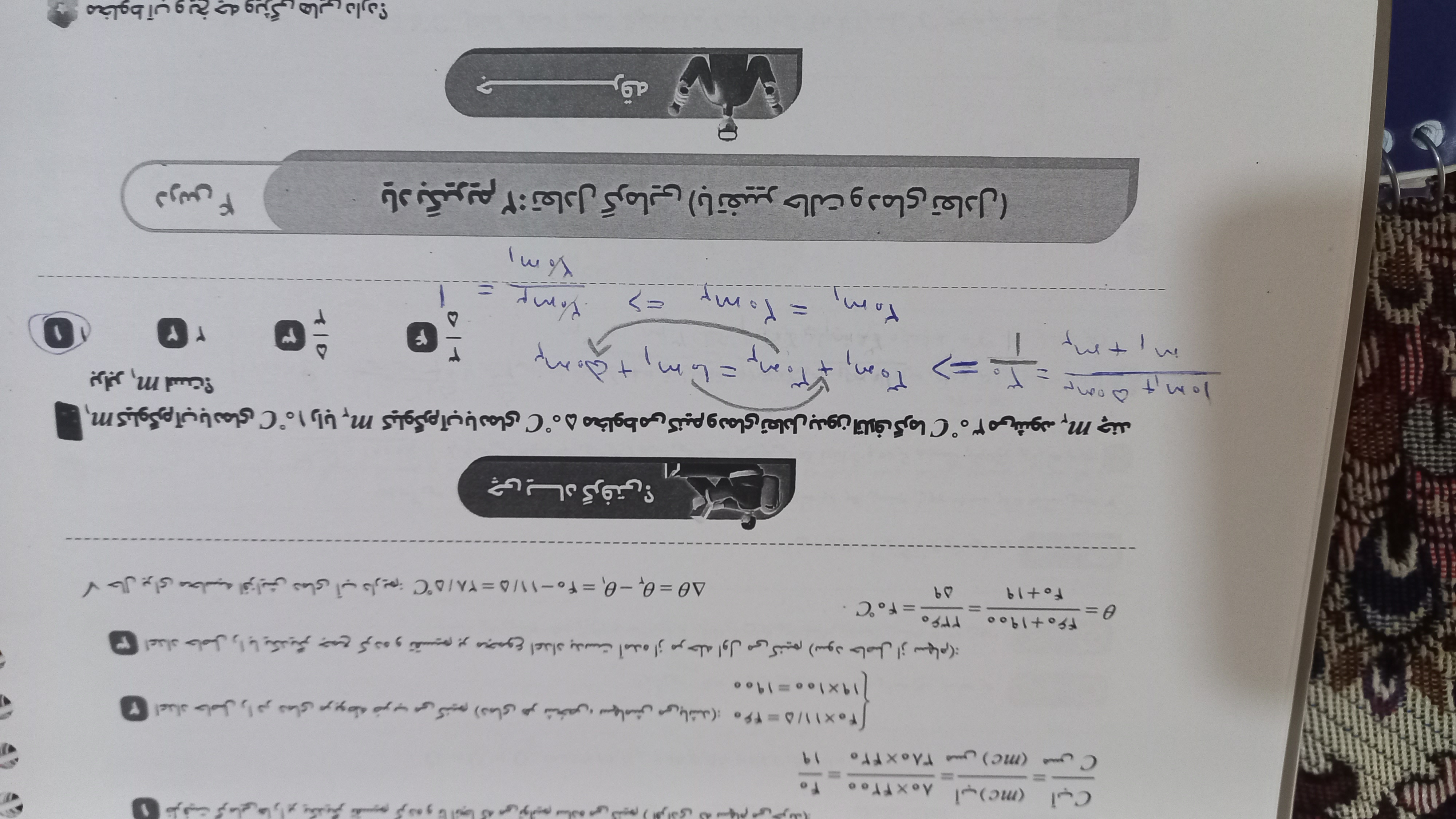 یاد بگیریم رو اگه با روش دومی بخوایم حل کنیم خیلی جالب حل میشه اگه m1 به m2 رو بگیریم x به y بعد این x و y رو بیایم در دما های خودشون ضرب کنیم و بعد x در دمای اولی بعلاوه ی y در دمای دومی تقسیم بر x+y برابر میشه با 30 رو طرفین وسطین کنیم x=y میشه پس نسبت جرم ها هم میشه 1 زیر 30 ثانیه طول کشید و خیلی قشنگ بود