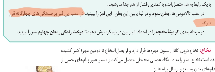 ببخشید استاد گفتن که مجرای بین بطن ۳و۴ از روی برجستگی های چهار گانه میگذره اما با توجه به شکل صفحه ۱۱ کتاب درسی این مجرا از زیر برجستگی ها میگذره؟
