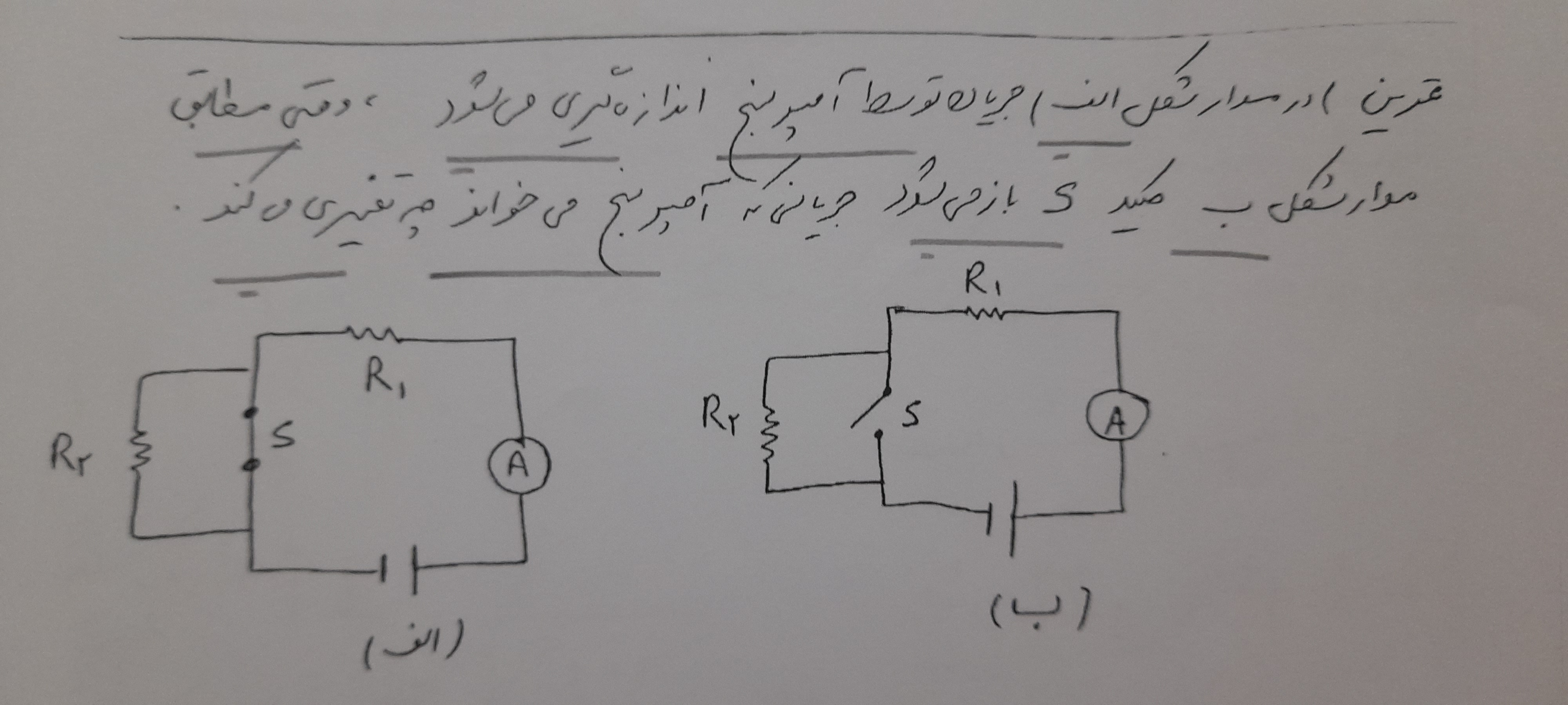 درسته جریان کم میشه چون با مقاومت رابطه عکس داره و از اونجایی که با باز کردن کلید مقاومت r2 به مدار اضافه میشه پس مقاومت معادل افزایش و جریان کم میشه