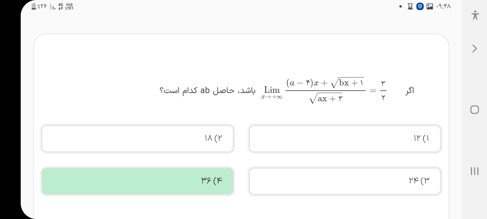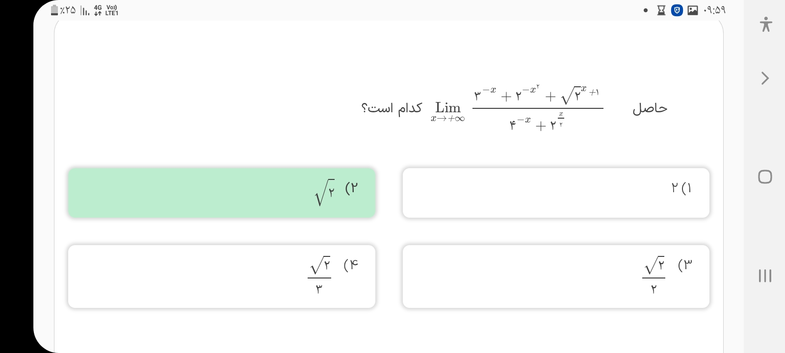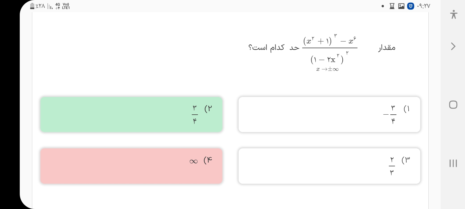گزینه 2 رو راحت ترم میشه حل کرد . بزرگترین x صورت میشه x به توان سه دوم که توانش از x مخرج بزرگتره پس حاصلش میشه بینهایت