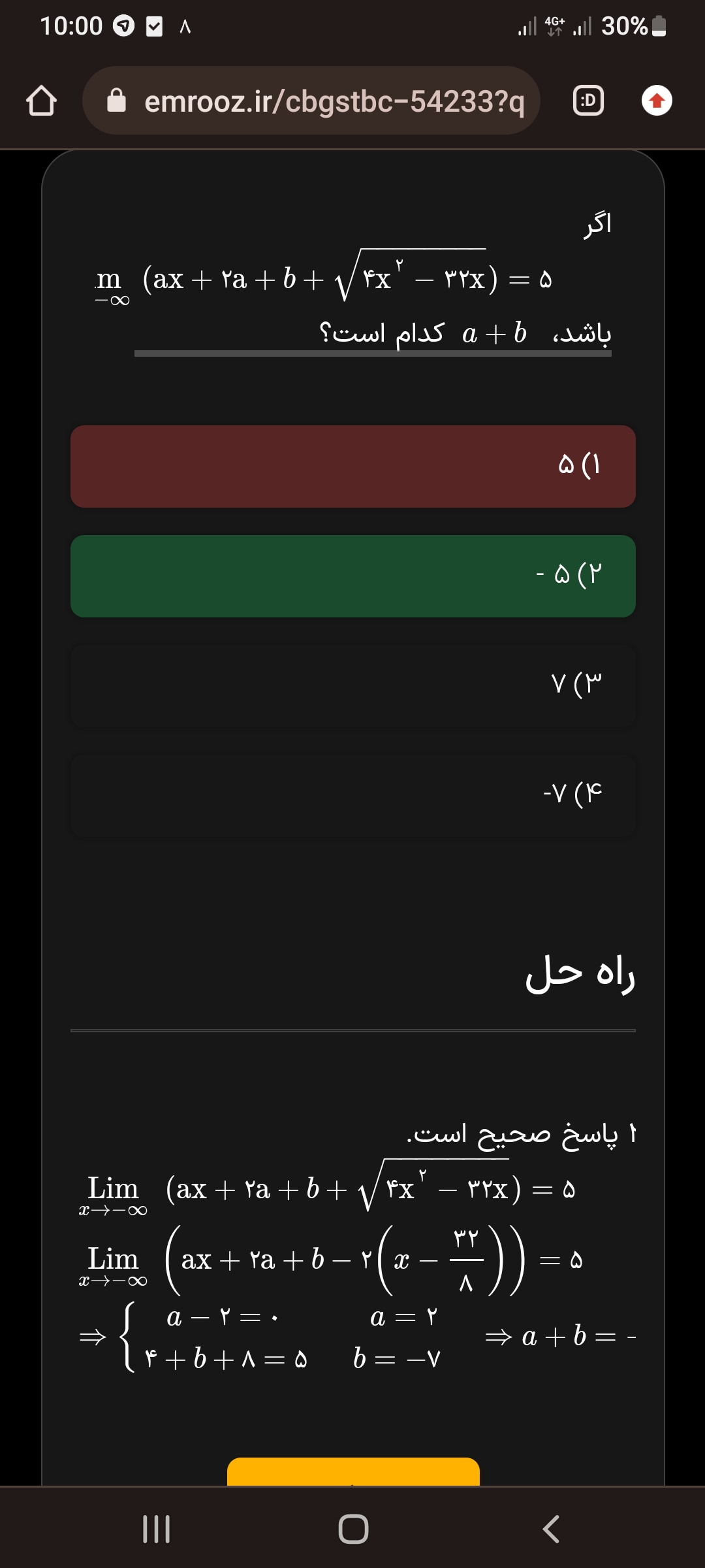 بچه ها من اینو با گویا کردن رفتم تو مرحله آخر گنده برداری کردم جوابم مثل استاد شد ولی میترسم این راه ابداعیم شانسی درست در اومده باشه 🤦♀️ درسته به نظرتون؟