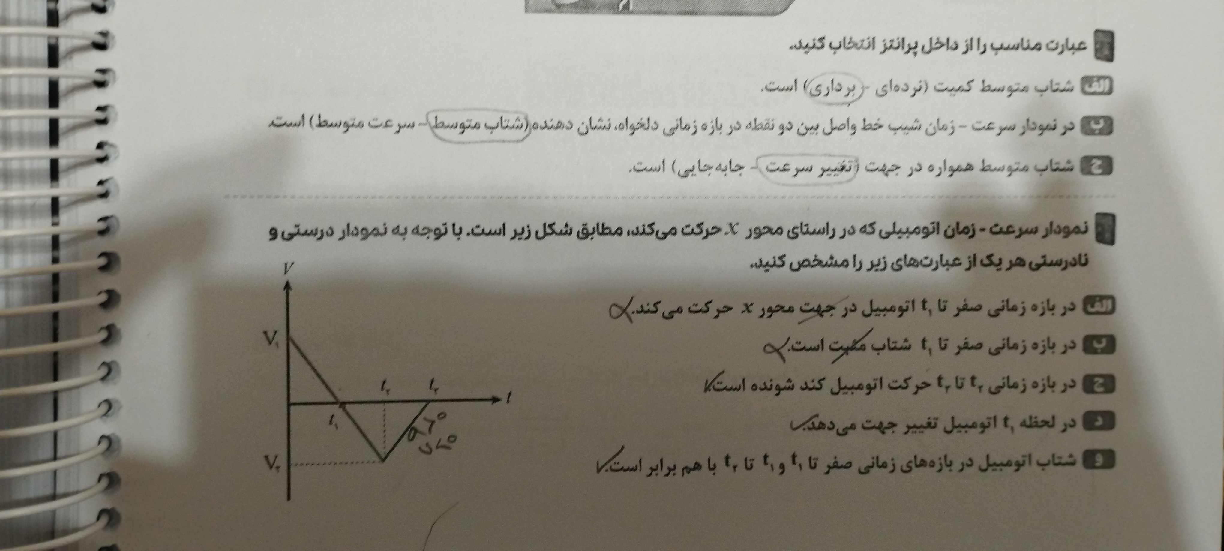 تو سوال سوم چی یاد گرفتی،مگه سرعت متوسط تو بازه 25 تا 40 ثانیه 2.5- نمیشه؟ پس چرا نسبت سوال برابر 1 شد؟مگه نباید منفی یک میشد؟