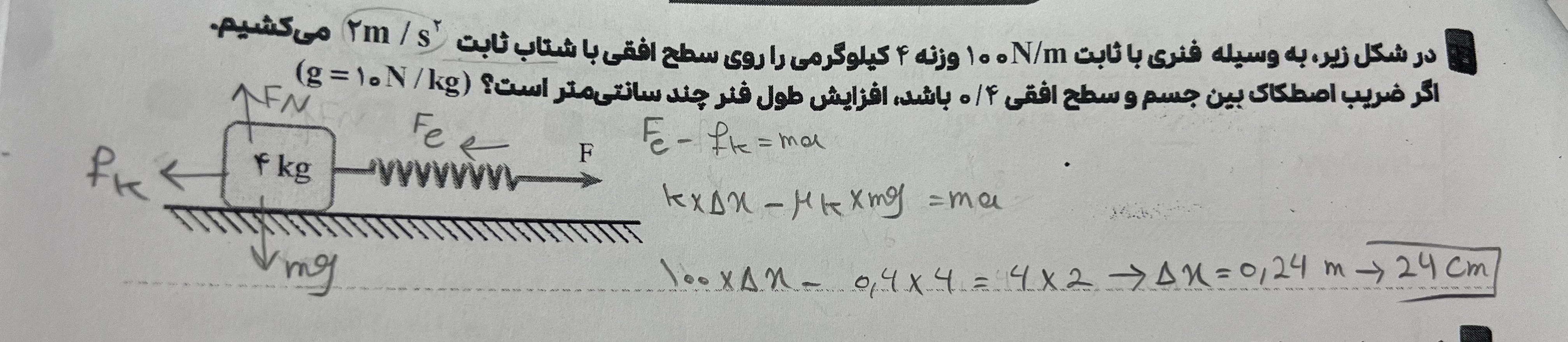 چرا نمیتونیم برخلاف یادبگیریم های قبل از این استفاده کنیم؟ چرا اینجا باید Fe منهای fk بشه؟ و آیا توی سوالات Fe=F هستش یا نه؟ من کامل اینجا گیج شدم