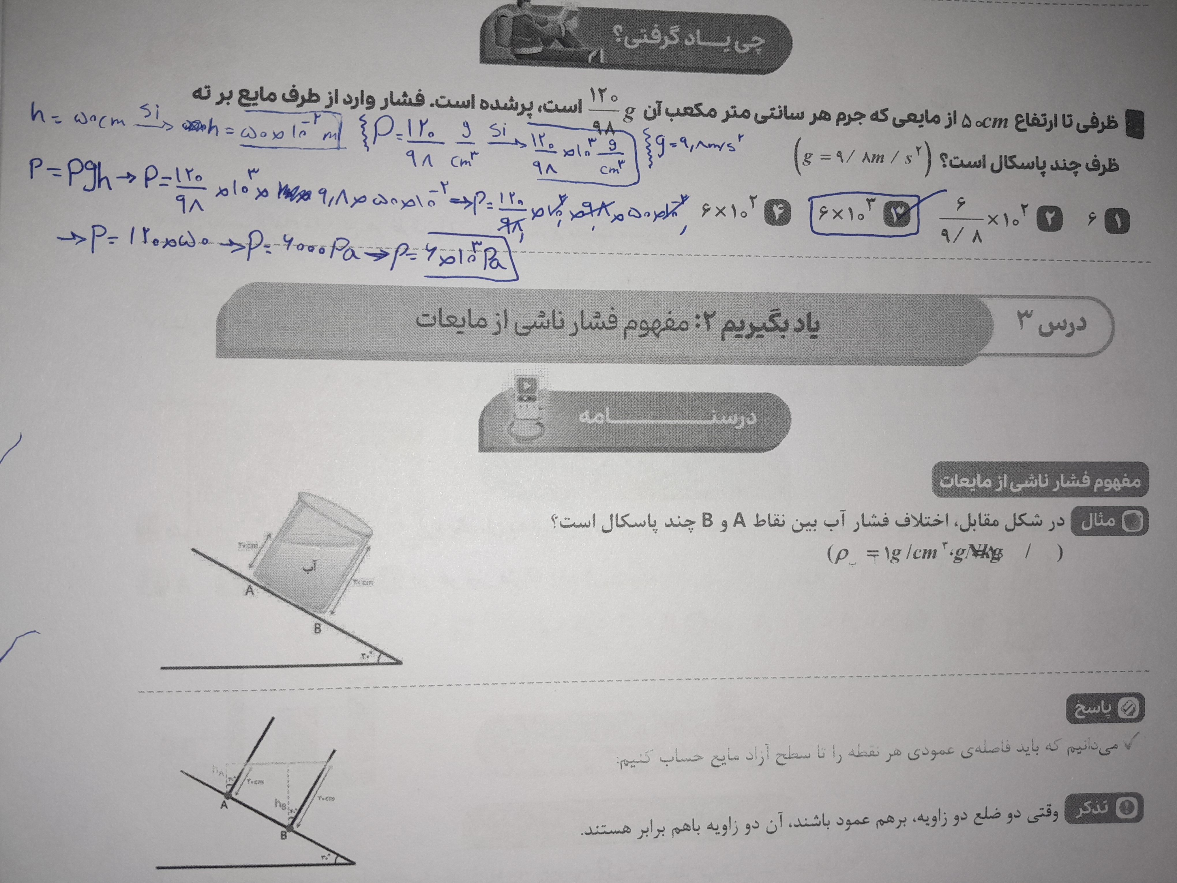 ببین توو یه مایع چگالی و شتاب گرانش که برابرن حالا طبق رابطه که pgh هستش چگالی و شتاب گرانش که ثابته هرچقد ارتفاع کمتری رو جایگذاری کنی فشارت کمتر به دست میاد و هرچقدر عدد بزرگتری بزاری فشار بیشتری به دست میاد.