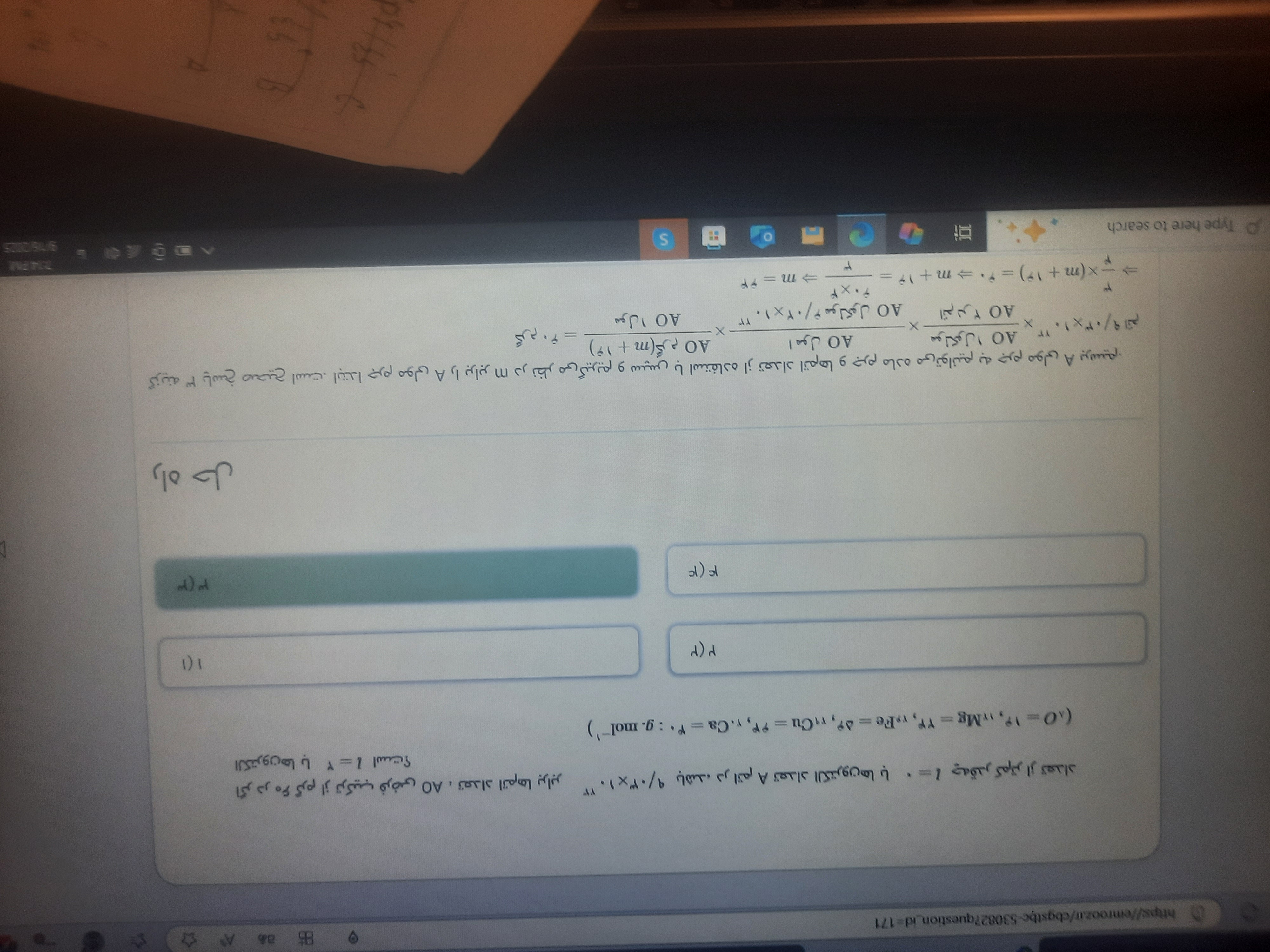 سلام وقتتون بخیر ببخشید این سوال به روش استاد میشه حل کنید؟ من هر طور حل میکنم جرم مولی 24 بدست میاد