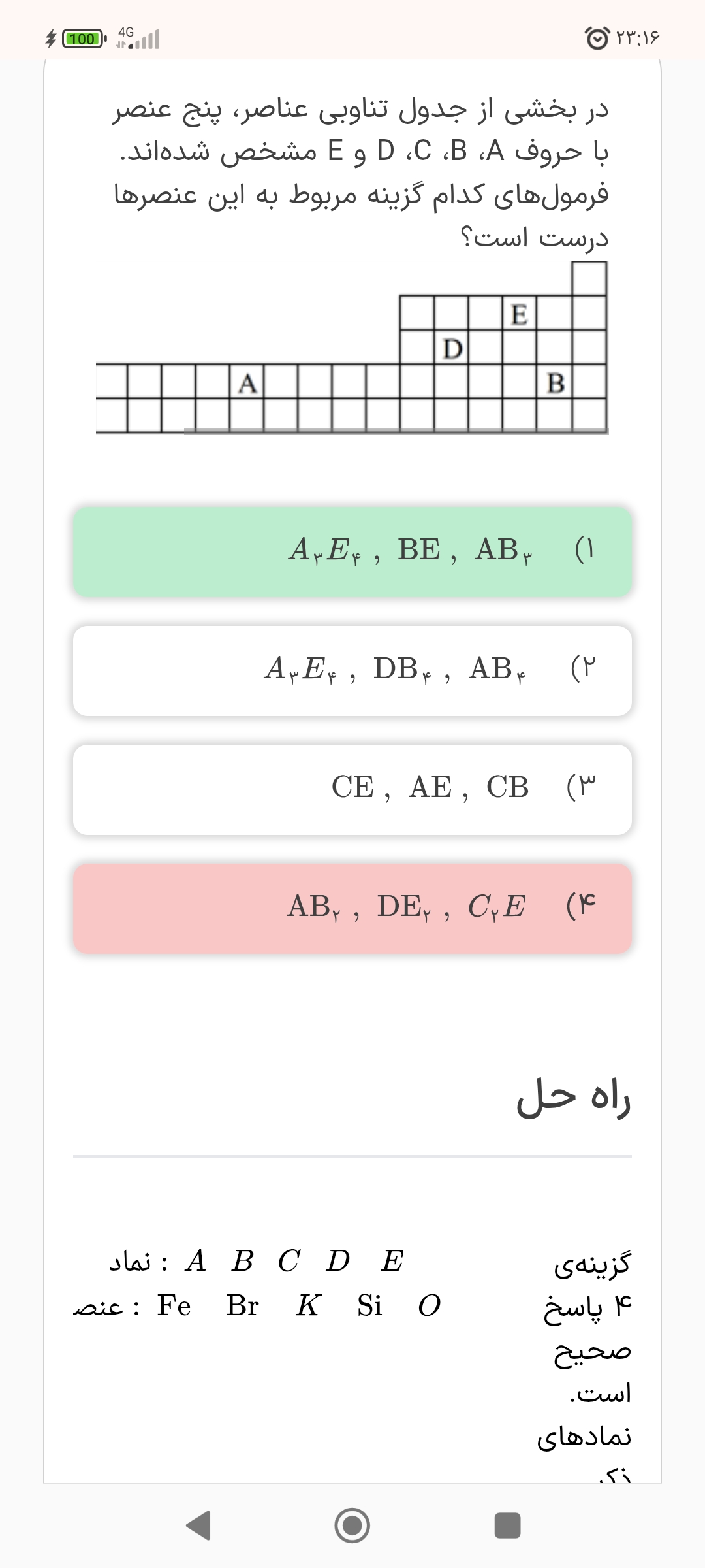 این سوال تو توضیحات گفته گزینه ۴ درسته بعد گزینه یک هم درست گرفته کدوم گزینه جوابه