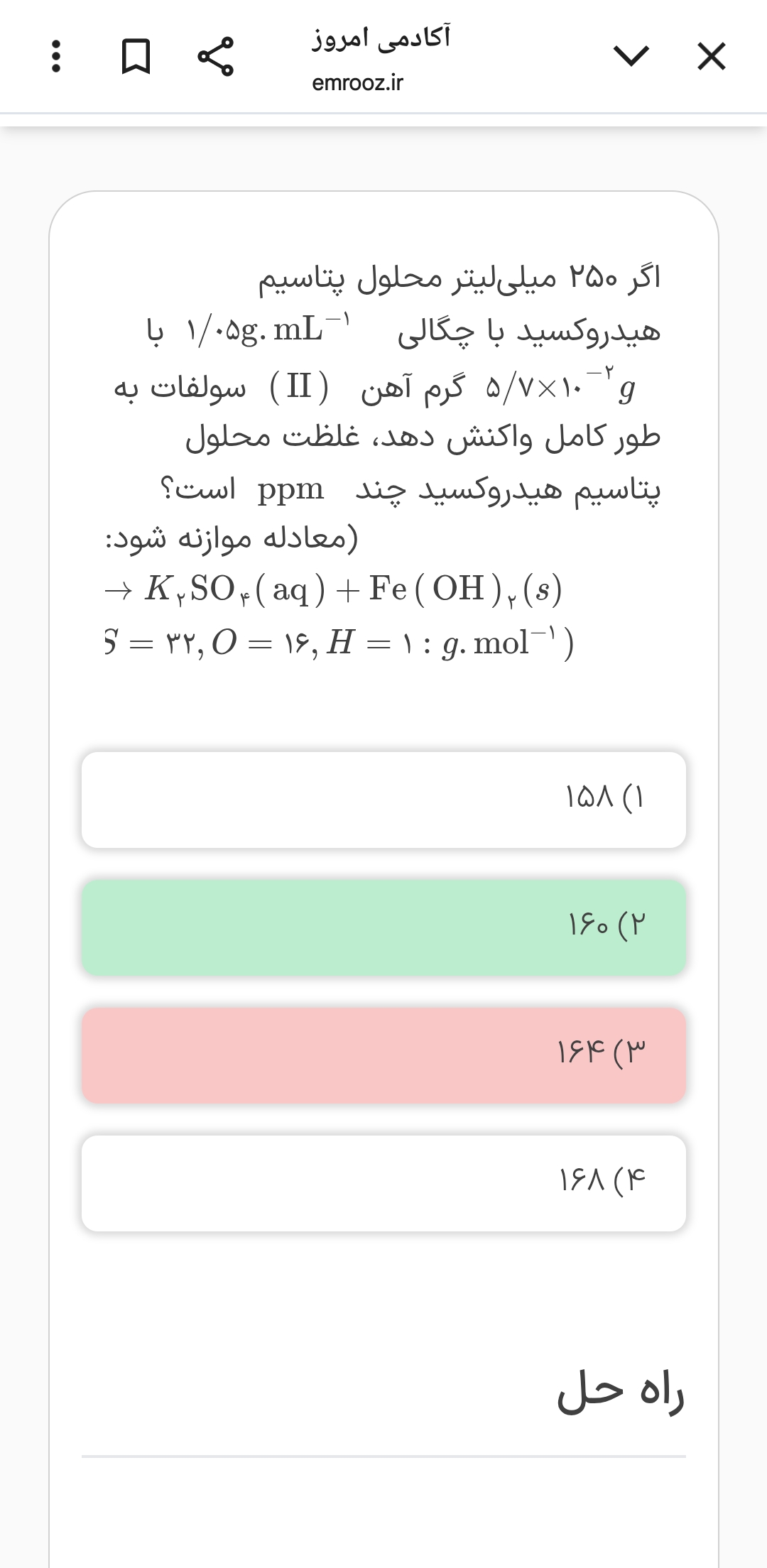 اینجا باید اول ppm رو له دست بیارم خودش گفته ۲۵۰ میلی لیتر تقسیم بر چی باید بشه ک بشه ppm تا بای محلول دیگ معادله نوشت