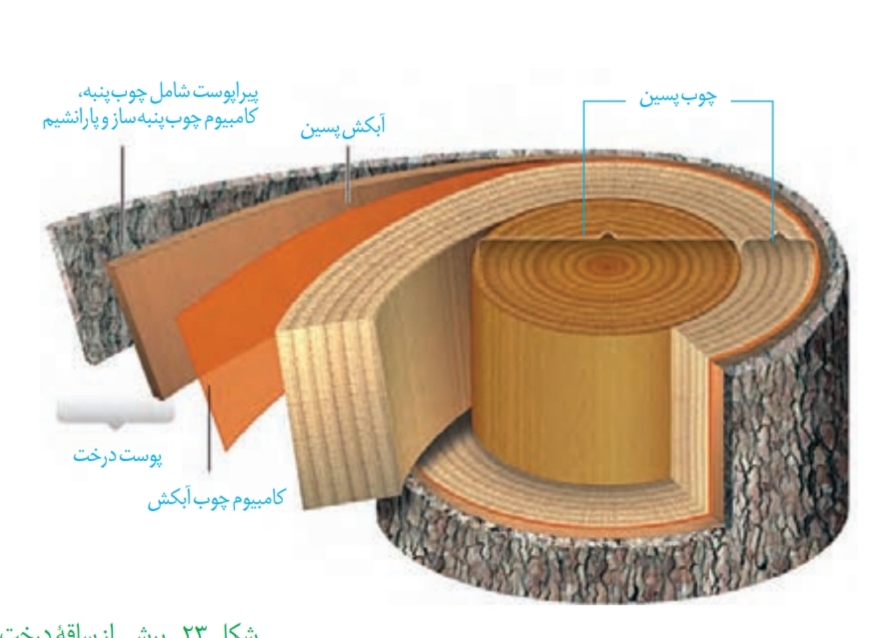 شاید منظور گزینه ۴ این تصویره و غلط هم نیست. چون هم آبکش هم چوبی آوندهاش روی دوایر هم مرکزه . یاخته های با دیواره نازک هم میشه منظورش آوند آبکش باشه نه فقط پارانشیم. که البته آبکش هم در مرکز نیست