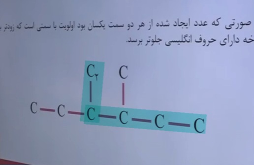 جواب چی یاد گرفتی زنجیره اصلی همون وسطی و مستقیم هست.عدد گذاری هم از چپ که زودتر به اتیل میرسه