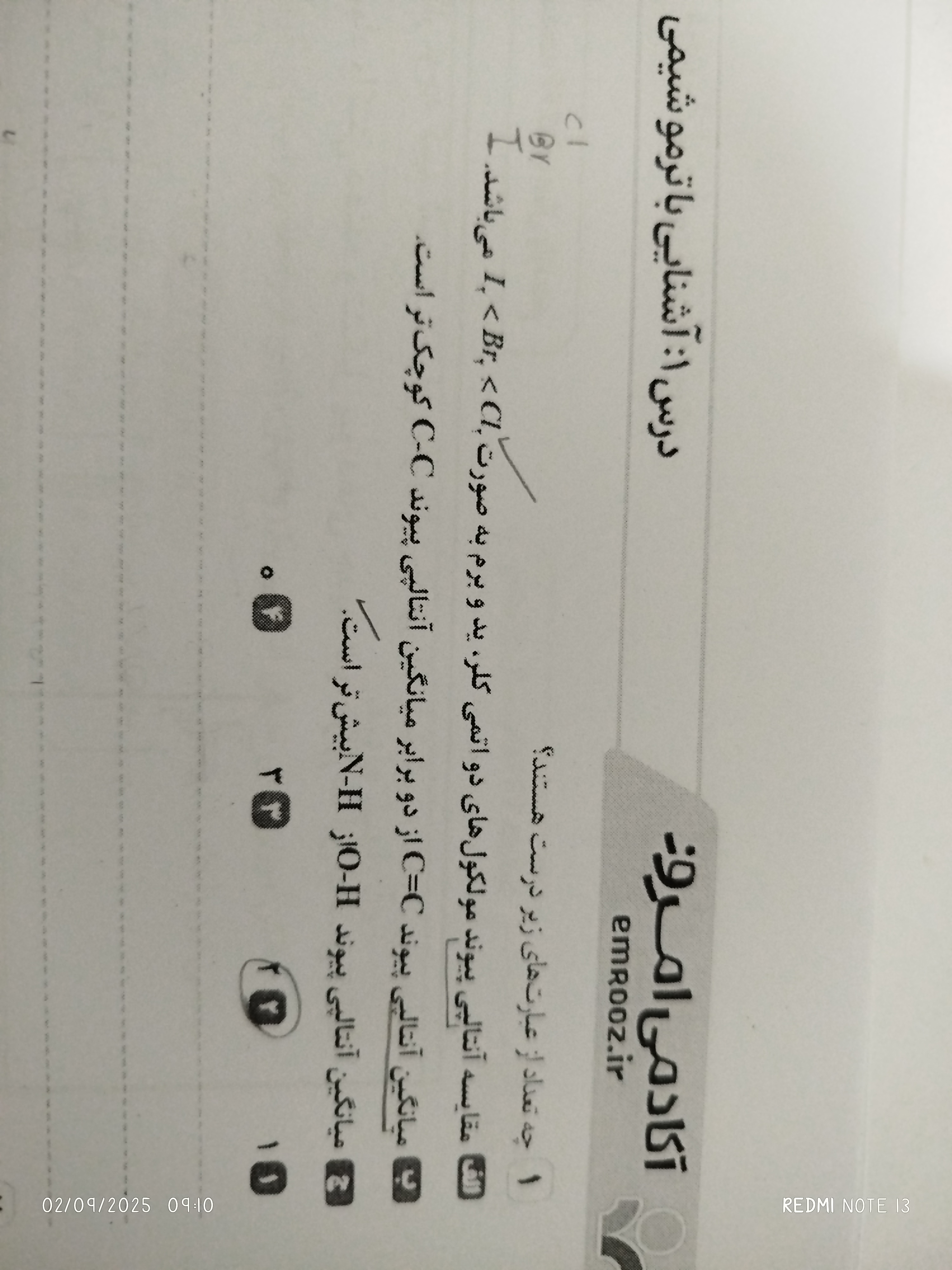 سلام وقت بخیر ی سوال داشتم خیلی مهم هست خواهشمندم ی راهنمایی بفرمایید در این لحظه که مشخص کردم در مورد شماره یک که بررسی مرتبه پیوند هست ی مثال نقض وجود داره اونم اینکه گاز اکسیژن که پیوند دوگانه داره آنتالپیش از کوچکترهHF