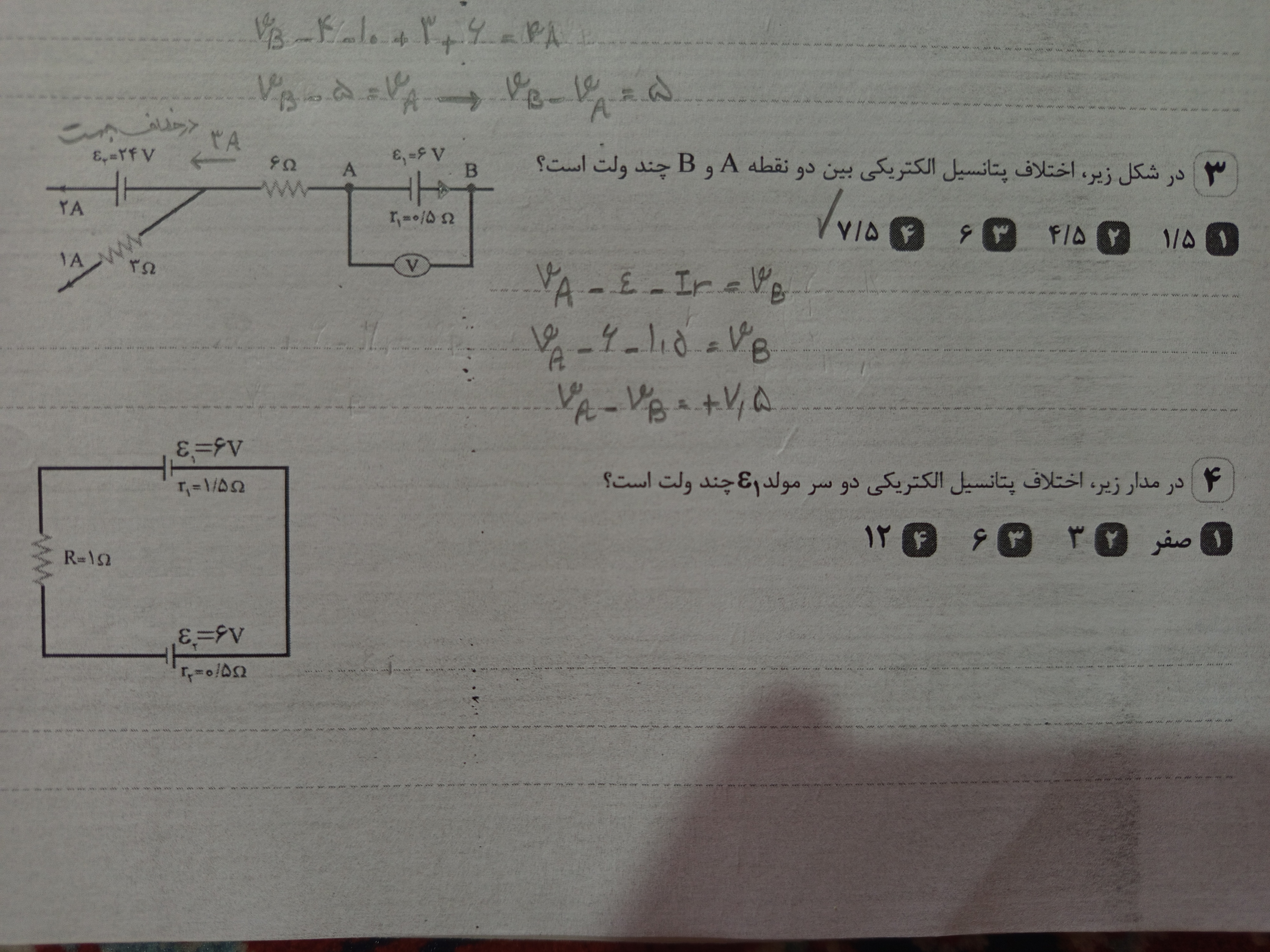 خب تو یاد بگیرم ها استاد گفته بود اگه مدار ساده بود(باتری غیر مولد نداشت و خطی بود) اختلاف پتانسیل همیشه صفره و نیازی به محاسبه نداشتش