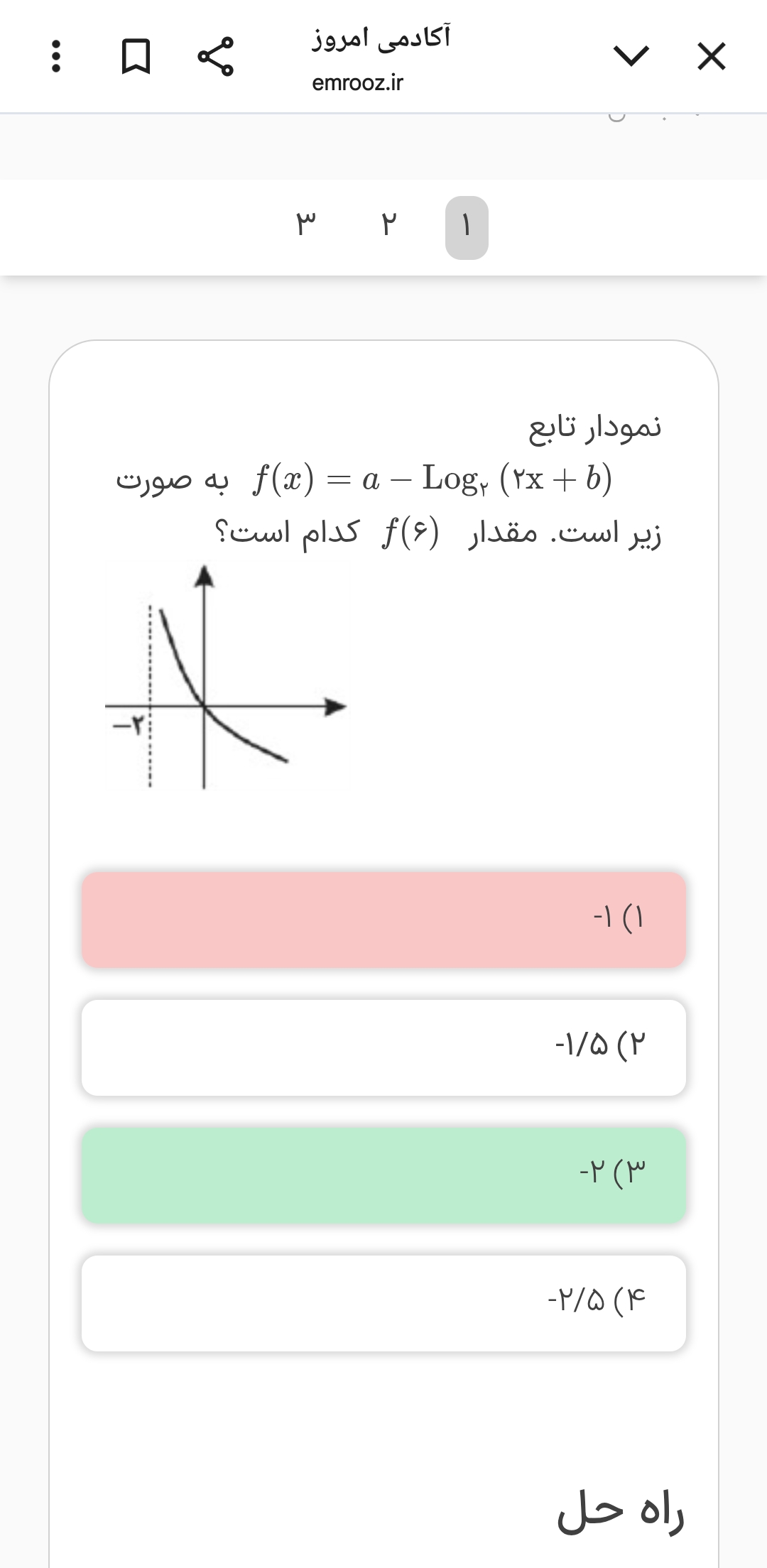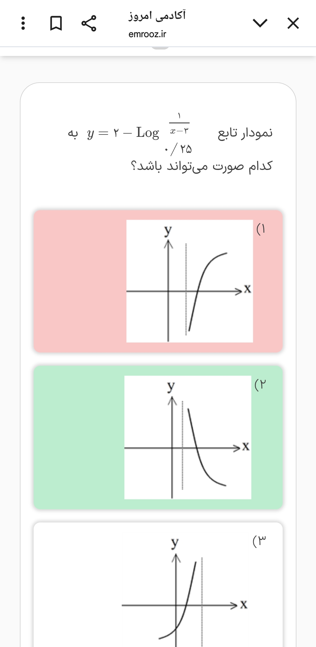 سلام من این قسمت که دامنه رو میگه ایکس های کوچک تر از ۳ رو نمیفهمم مگه نگفتیم دامنه لگاریتم هیچوقت منفی نمیشه؟؟