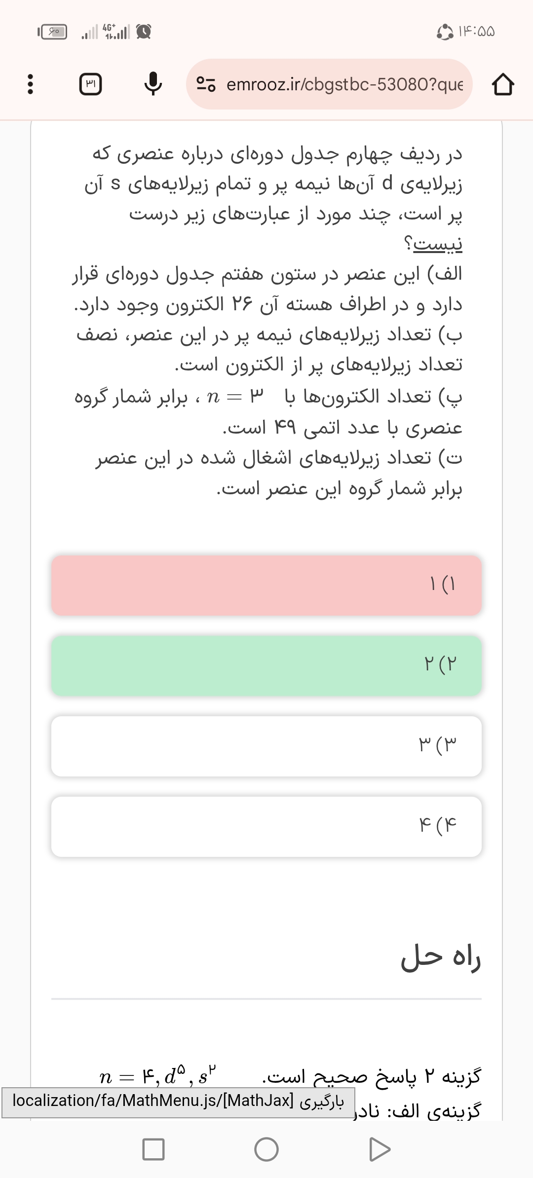 سلام وقت بخیر.. ببخشید سوال 2، مگه نباید با فرمول پیدا کردن الکترون زیر لایه بریم که 4L+2 هست؟ خب میشه 6 تا الکترون که چرا از اون روش 18 بدست اومد