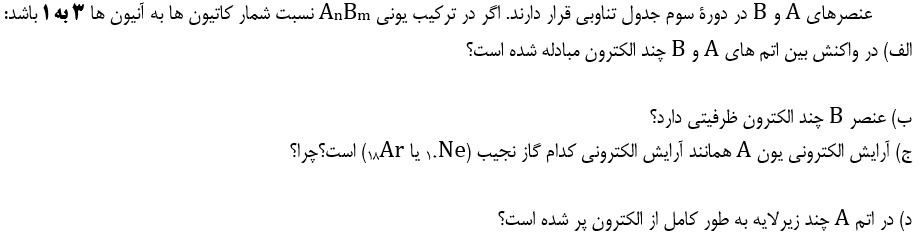 سلام ببخشید مگه این طوری نیست که اگه. بار ما مثبت بود از آخرین زیر لایه به تعداد بار ،از الکترون هامون کم میکردیم؟ و اگر منفی بود به تعداد بار به آخرین زیر لایه اضافه می کردیم؟