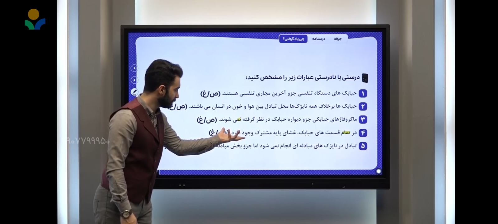 اگر بگه در همه ی قسمت های حبابک با مویرگ غشا پایه مشترک هستند غلط میشه درسته
