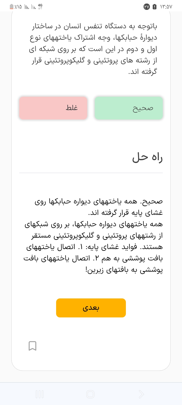 سلام ؛ ببخشید ، در گزینه « الف » گفته گروهی از یاخته های سنگفرشی سورفاکتانت ترشح میکنند . مگه درست نیست ؟ ( یاخته های نوع دوم هم گروهی از یاخته های سنگفرشی محسوب می شوند )