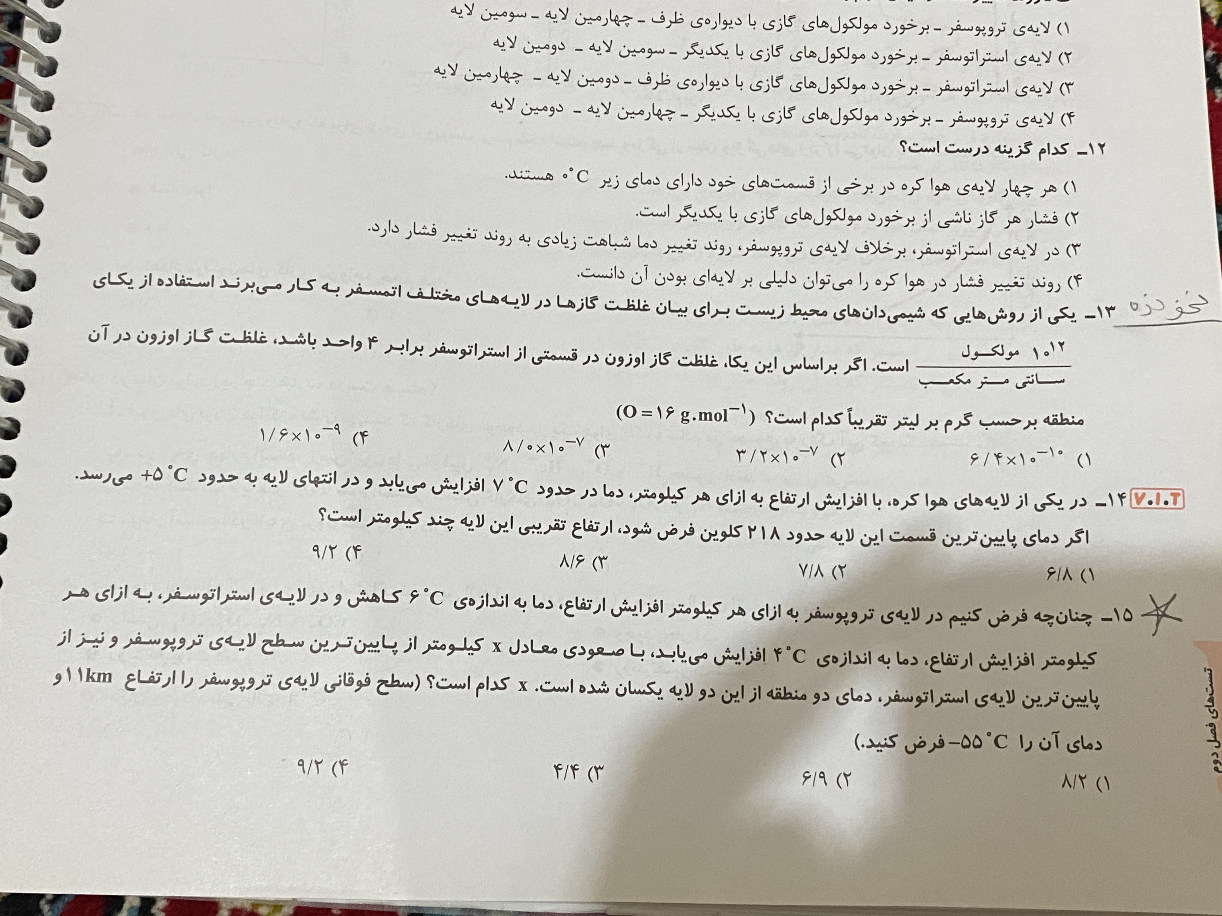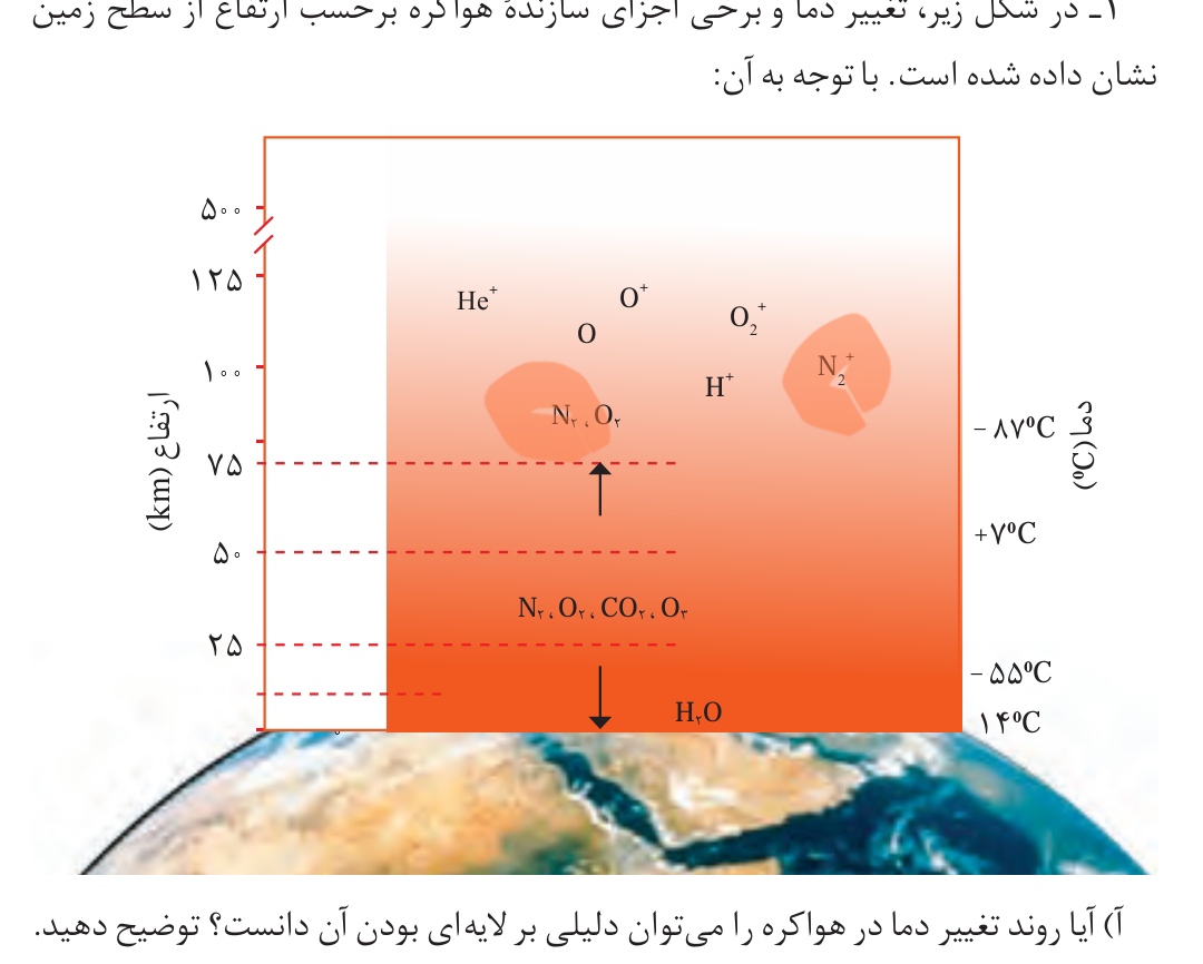 سلام کتاب درسی حرفی از ترموسفر نزده و زیاد مهم نیست تغییرات دما در ارتفاع های بالاتر (بعد از تروپوسفر) رو در حد همین شکل بلد باشید کفایت میکنه 🌷 (در کل اطلاعات حفظی کتاب درسی کفایت میکنه)