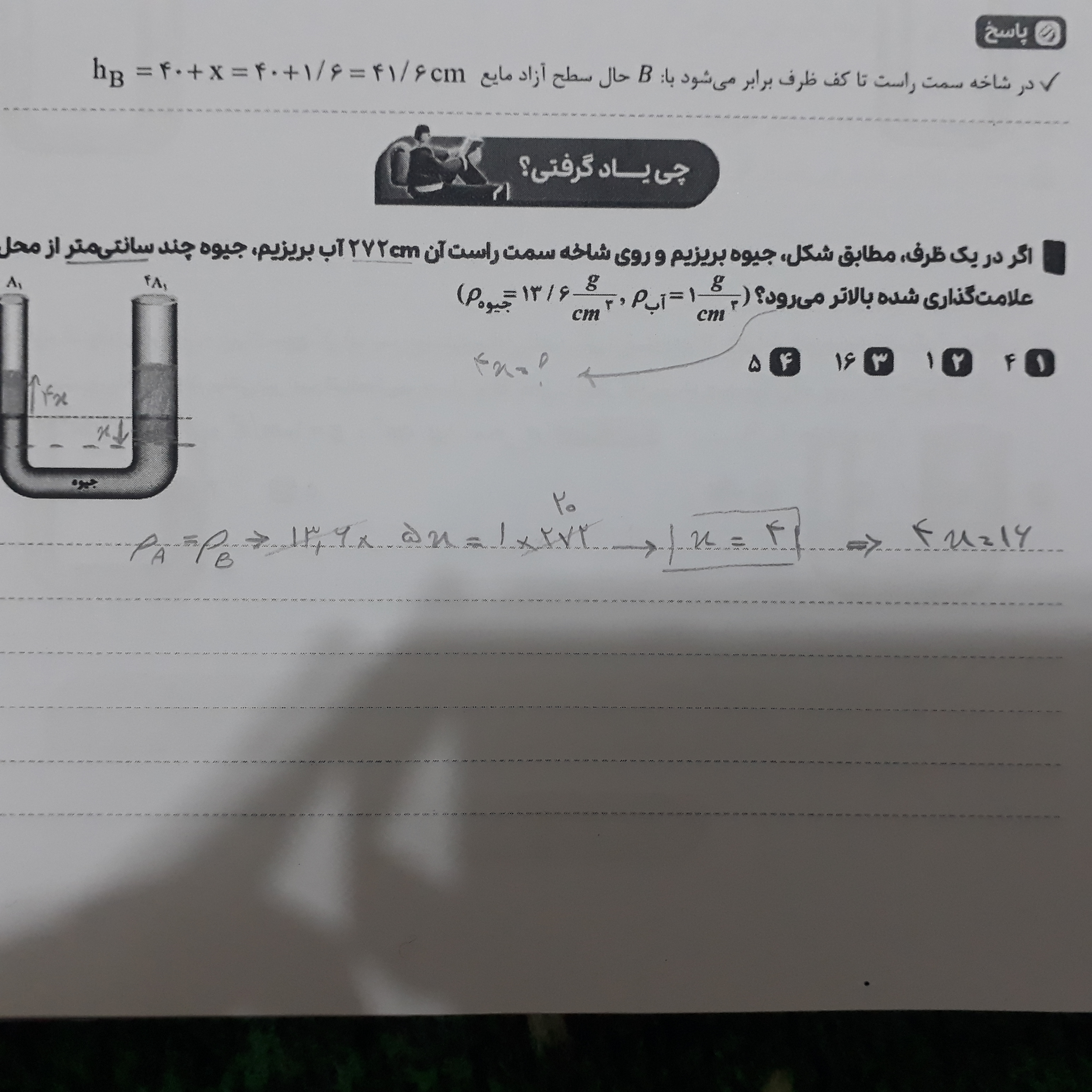سلام ببخشید اگر می گفت فشار 2 کیلو پاسکال باشد در سمت چپ . باید دلتا اچ رو مساوی 5ایکس می گذاشتیم؟؟؟