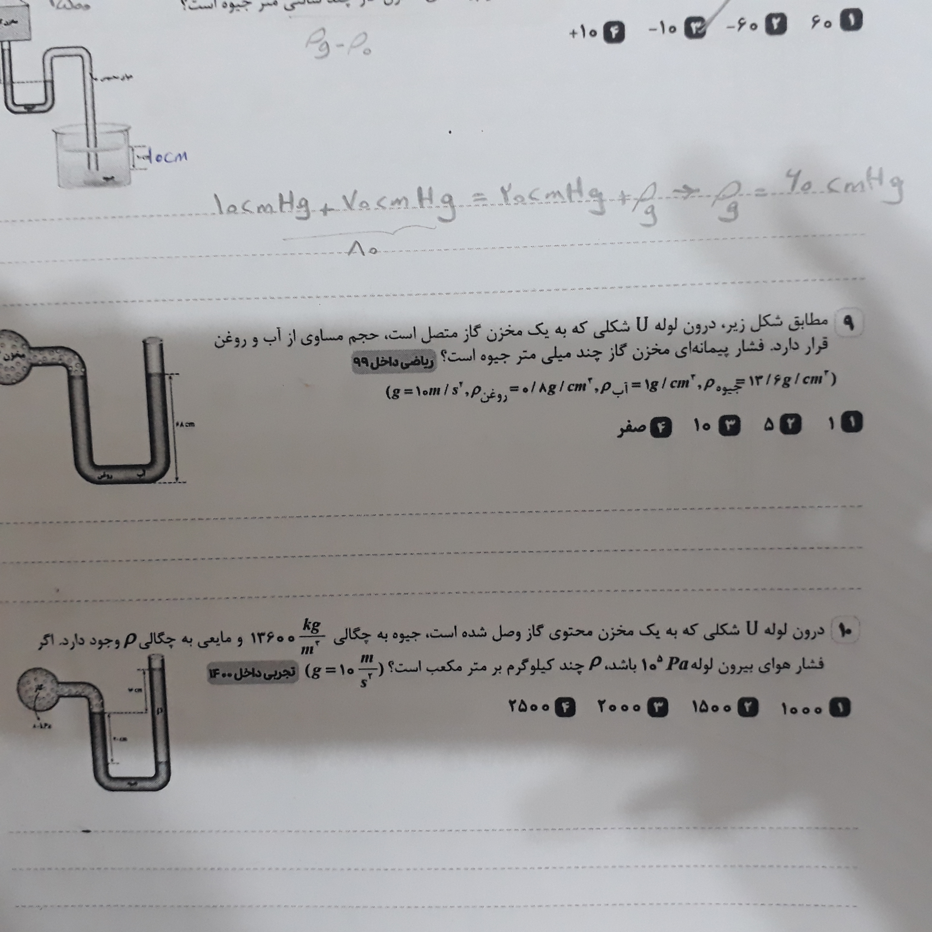 من این قسمتو متوجه نشدم چرا باید فشار هوا از گاز بیشتر باشه وقتی مایع رفته بالا باید گزینه یک میشد