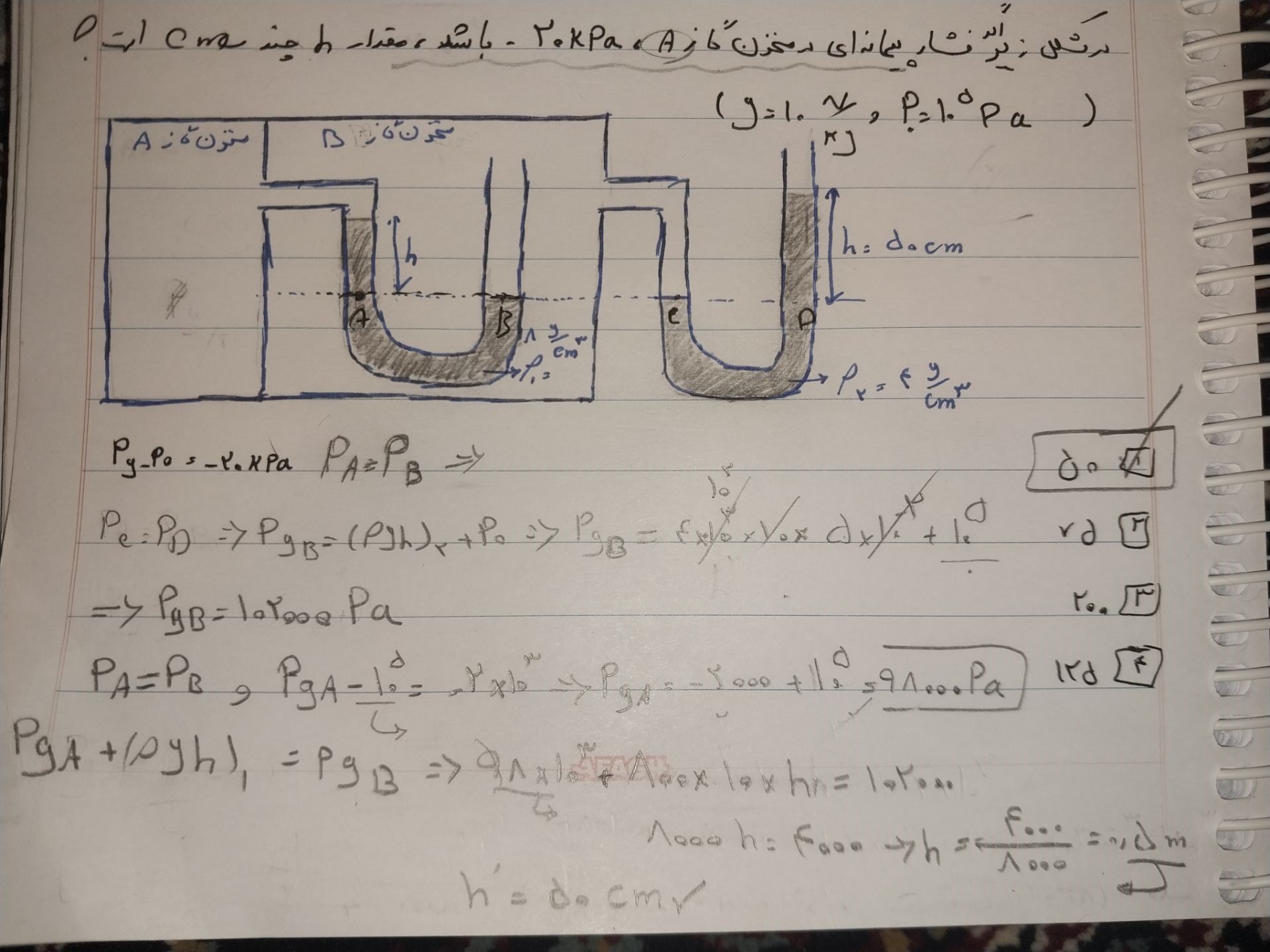 وقتی فشار گاز مخرن اندازه ۵ سانتی متر جیوه اضافه بشه یعنی جیوه از چپ پنج سانت میره پایین و از راست یک چهارم از ۵ سانت میره بالا. از اون طرف دوباره فشار هوا 1 سانت کم میشه یعنی دوباره جیوه در شاخه راست یک سانت میره بالا و در شاخه چپ چهار سانت میره پایین. خوب پس در سمت راست میشه یک چهارم از 50 م م بعلاوه ی 10 میلی متر میشه 22/5 چرا این روش اشتباهه؟؟ کجاش رو اشتباه رفتم؟