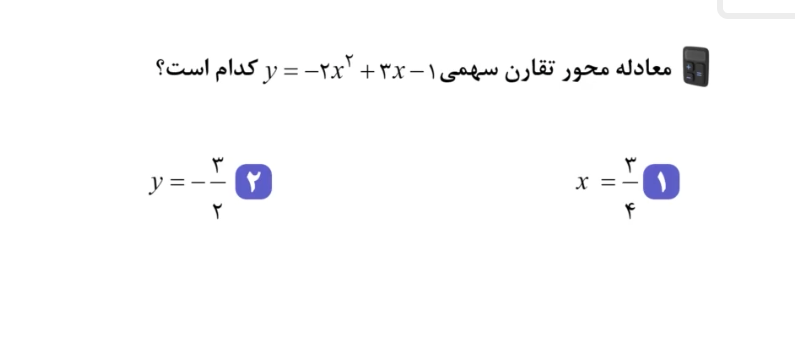 سلام و وقت بخیر مقدار a شده ۳/۴ ولی در صورت سوال ، ضریب ایکس دو هست a-1 پس باید منهای یک بشه که میشه منفی ۱/۴