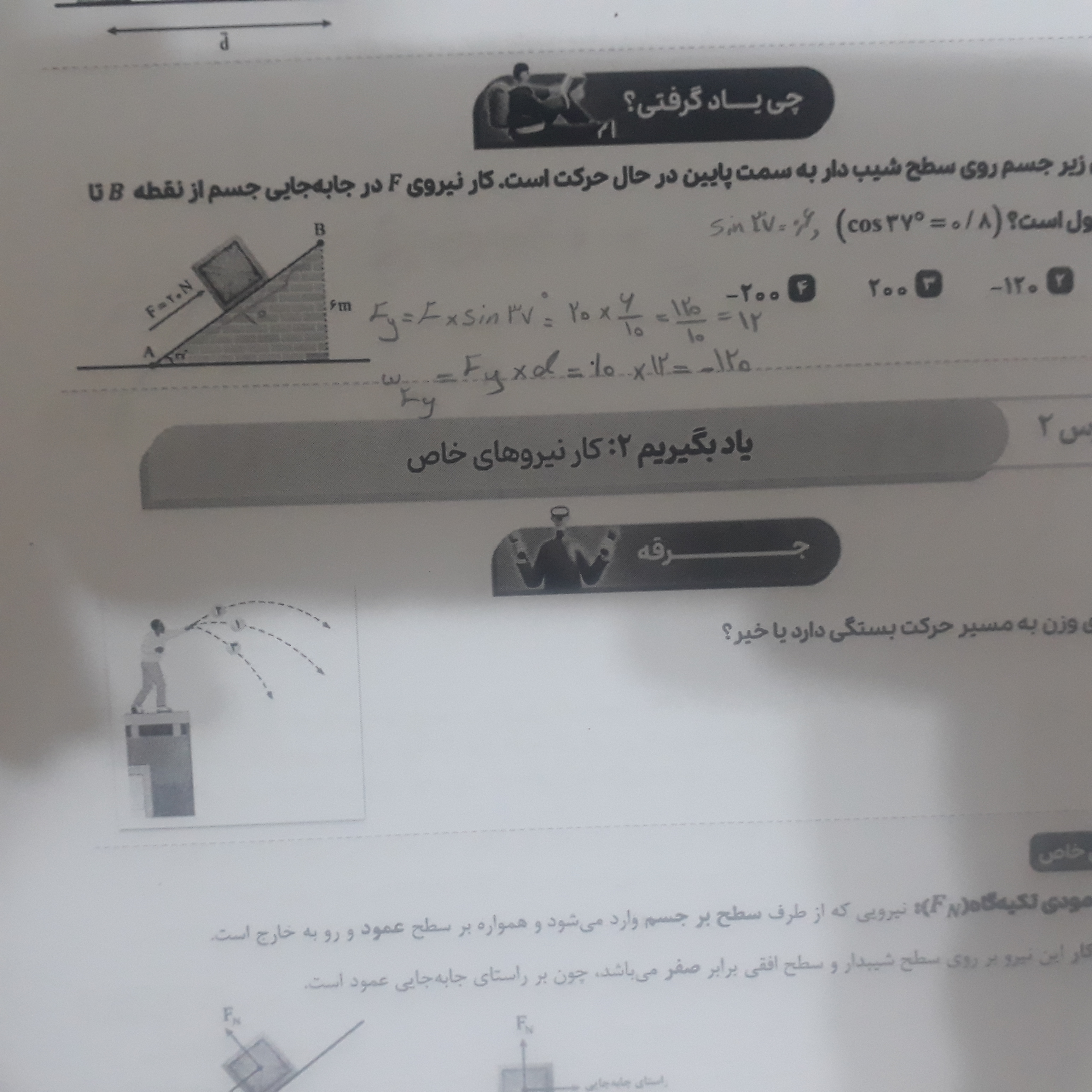 استاد اون قسمتی که میگی اگه ی سطل را دستمون بگیریم و راه برویم کار صفر است کی گفته استاد پای ما داره ی نیرویی را به زمین وارد میکنه که حرکت میکنیم پس کار صفر نیست