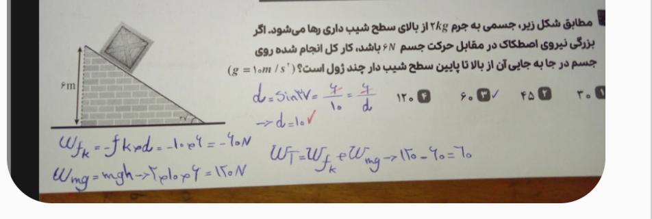 توی این سوال نباید عدد ۶ (نیروی اصطکاک) رو ضبدر جا به جایی میکردیم که بشه ۶۰؟
