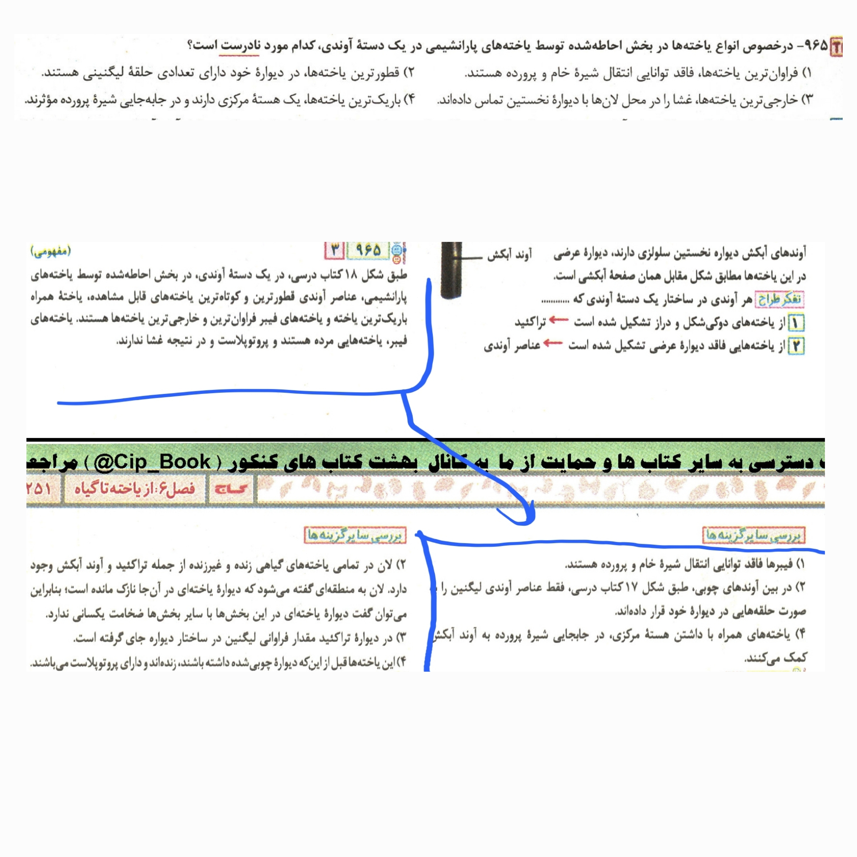 سلام وقت بخیر ببخشید من یک چیزی رو متوجه نمیشم اینکه الان اگر همه یاخته ها همه دیواره هاشون بگیم منفذدار هستن پس یاخته های مرده چطور میشه؟ بعد یک چیزی رو متوجه نمیشم اینکه در تست ها گفته میشه زمانی که لیگنین نفوذ میکنه و پلاسمودسم رو میپوشونه یاخته میمیره ولی توی شکل کتاب بافت اسکلرانشیم با اینکه مرده هست هم لان دارن هم پلاسمودسم...؟ بعد الآن یک جایی هم از آی کیو نوشته همه یاختههای گیاهی لان دارن...؟ متوجه نمیشم دقیقا چه جمعبندی ای بکنم...؟