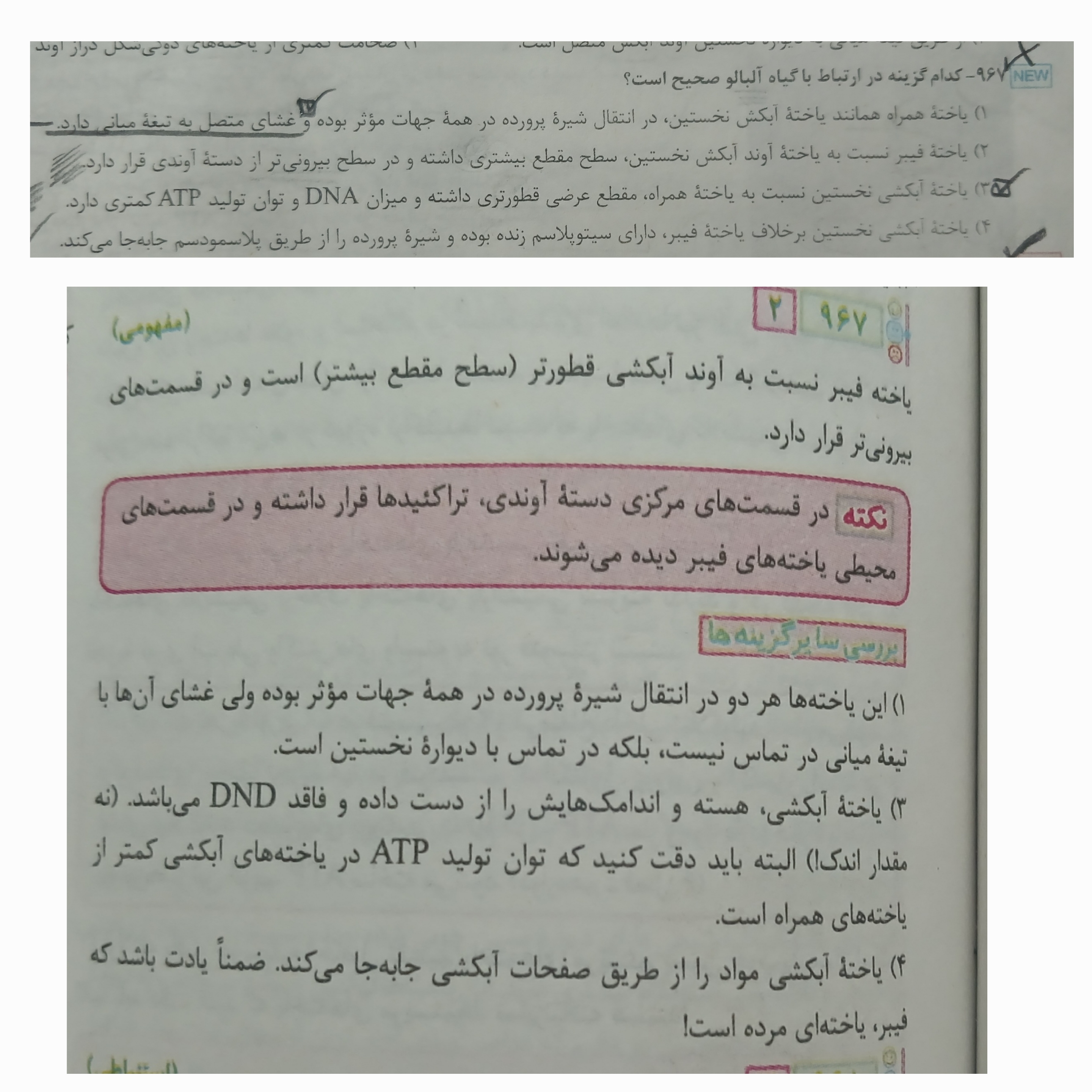 سلام وقتتون بخیر ببخشید چطور از صورت سوال متوجه بشیم منظور سوال همین دسته های آوندی توی برگ نیست؟ چون توی برگ فیبر ندارن اصن دسته ها و با این مدلش گزینه ۳ جواب میشه...؟ تصویرشم...: